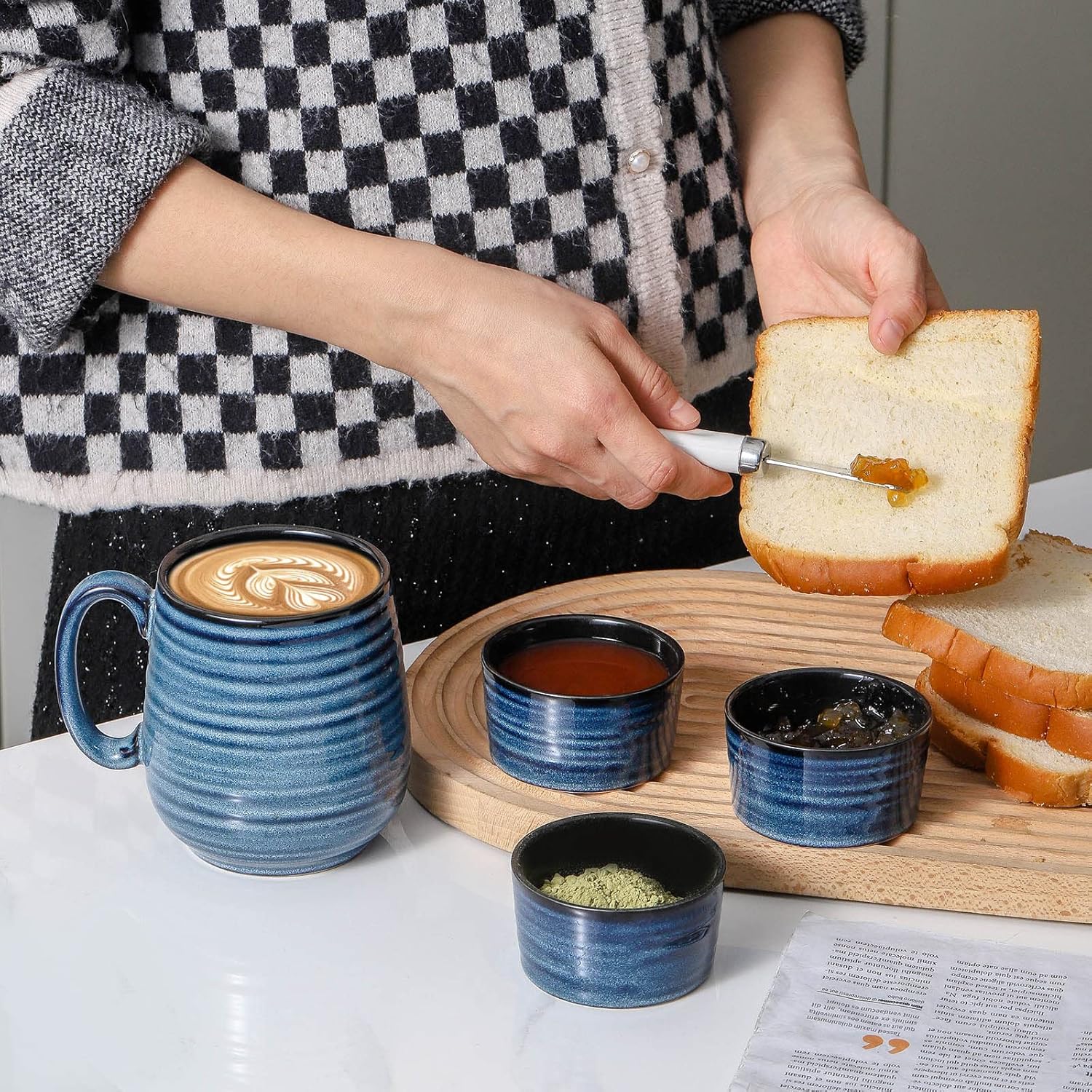 • EXQUISITE VERTICAL LINE DESIGN:Our creme brulee ramekins have elegant crosswise contours that make it easy to grip, and add a good stylistic touch on table settings, Its color navy can match well with dinnerware and create a better dining experience.