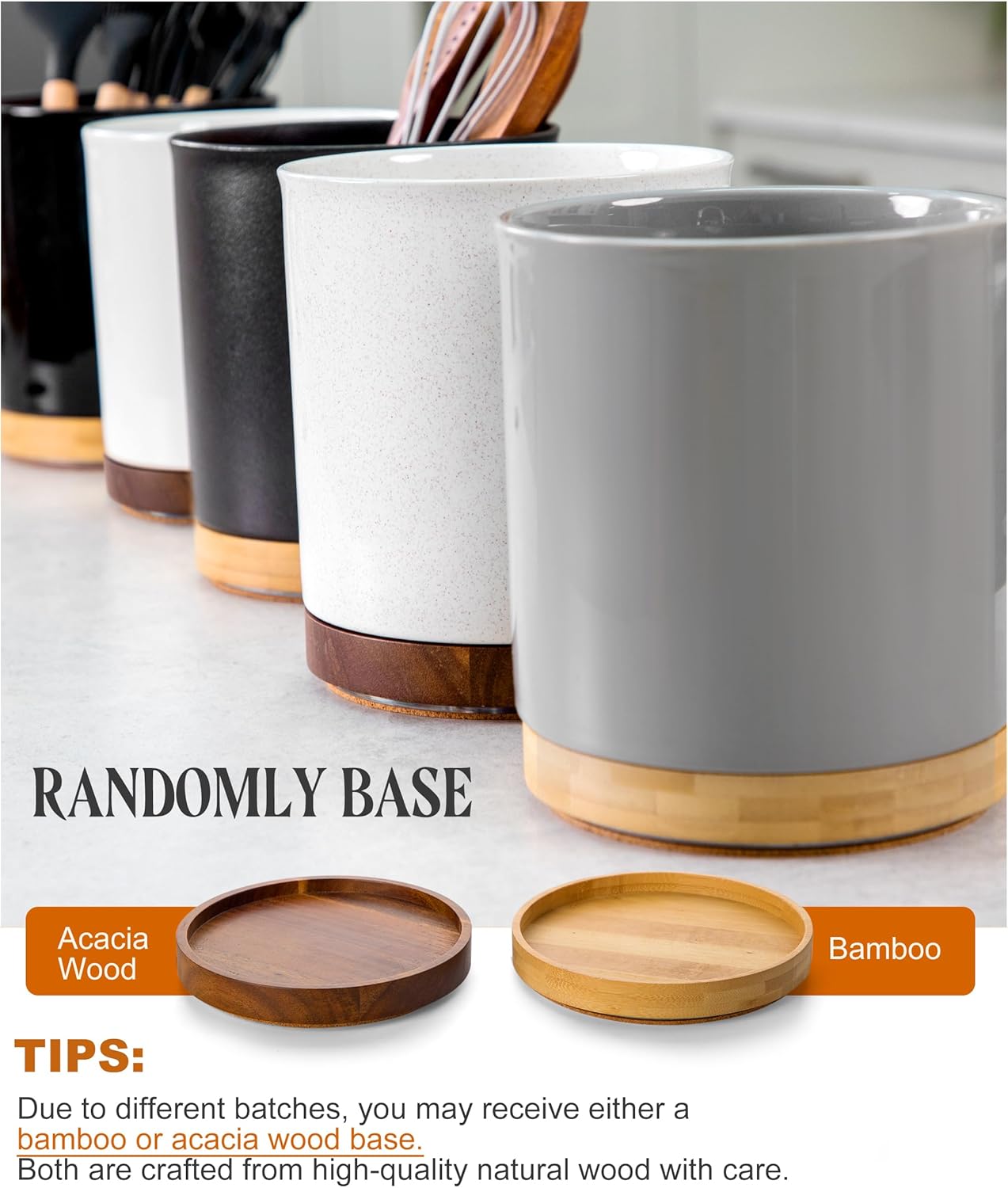 • Stable & Durable: Made of premium ceramics, this ceramic utensil holder is clearly heavier than ones made of other materials, steadily stands on your countertop; Glossy glaze & durable material, withstands long-time daily uses