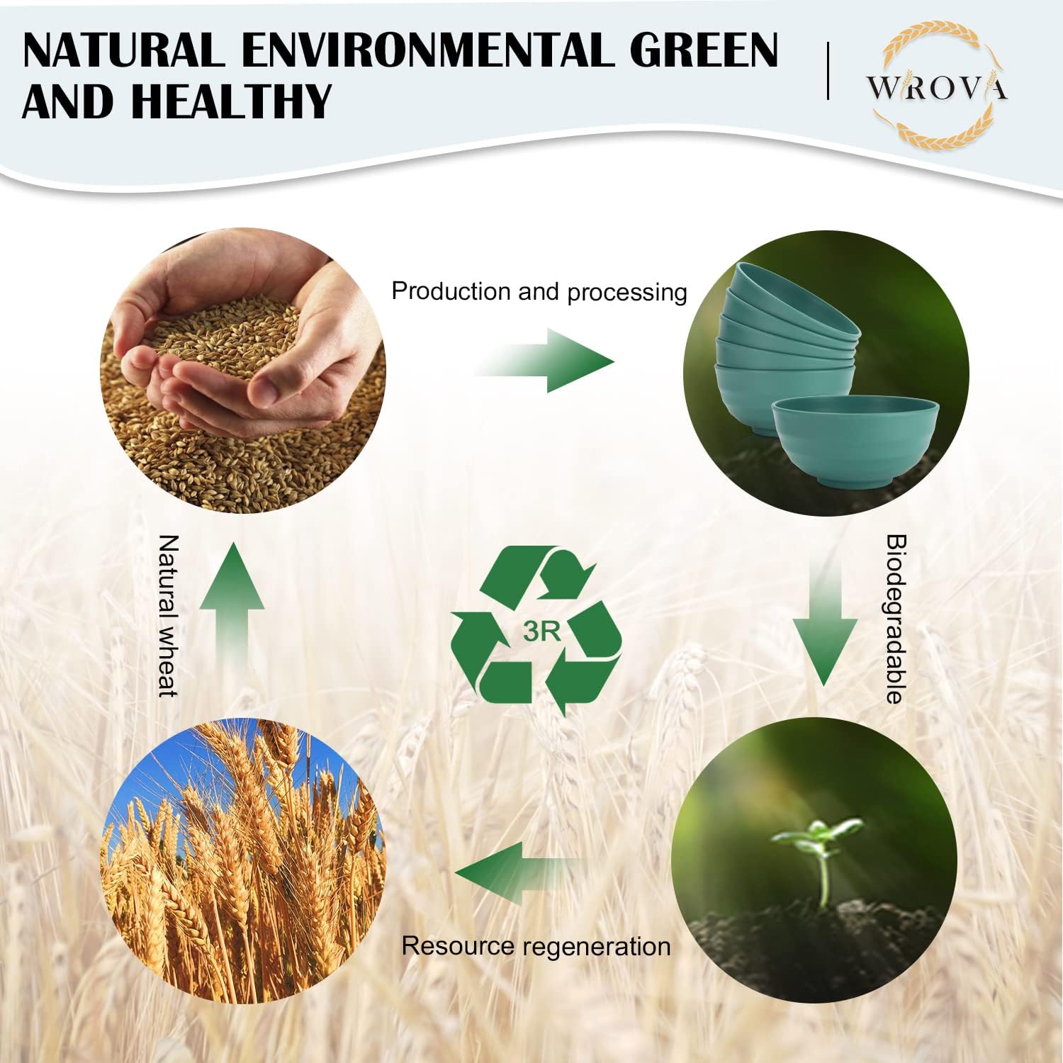 • 【Wheat Straw Materials】These bowls set is made of natural organic wheat straw fiber, the material is non-toxic,odorless.There is no plastics and harmful chemical materials.Very healthy and beautiful tableware for your family.