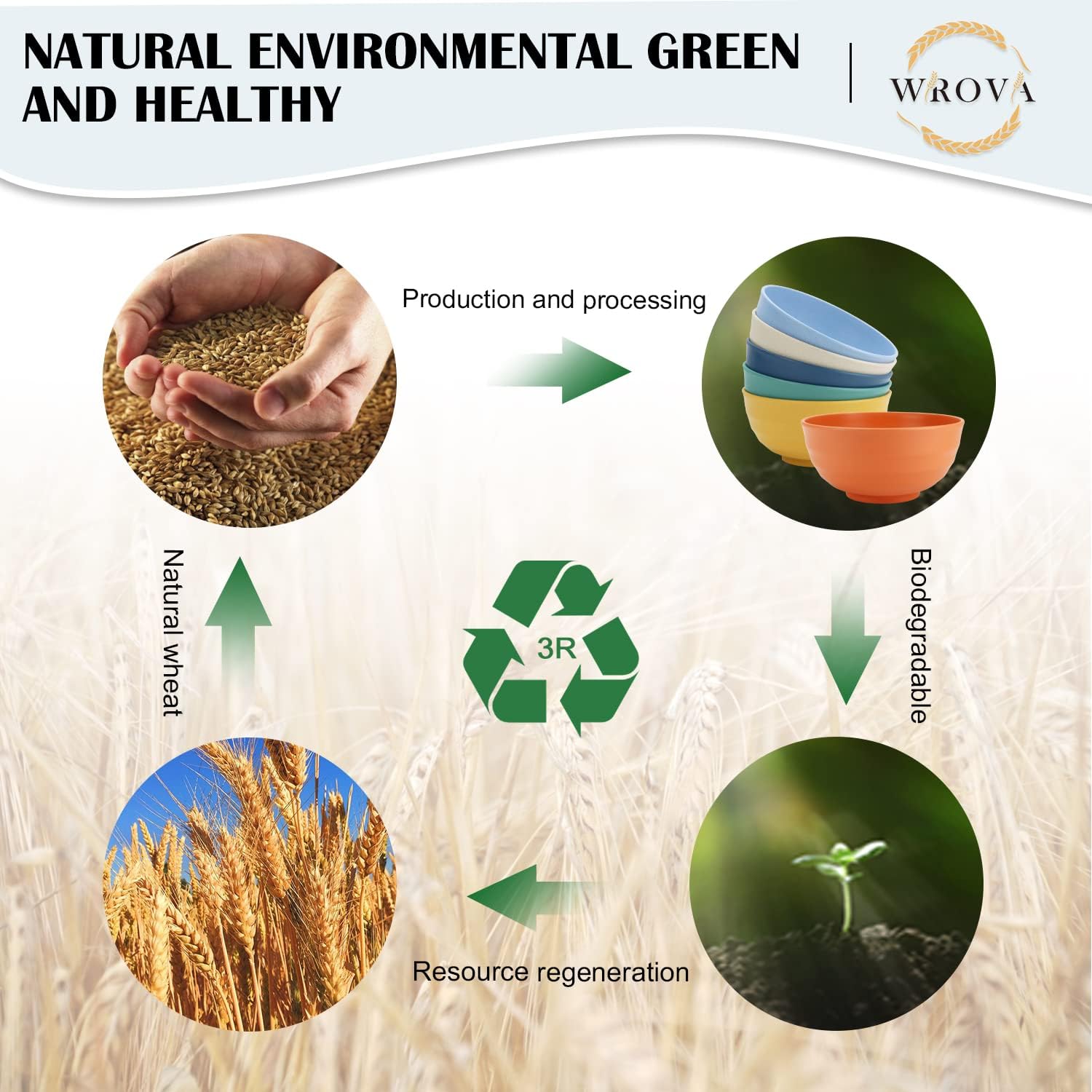 • 🌾【Wheat Straw Materials】These bowls set is made of natural organic wheat straw fiber, the material is non-toxic,odorless.There is no plastics and harmful chemical materials.Very healthy and beautiful tableware for your family.