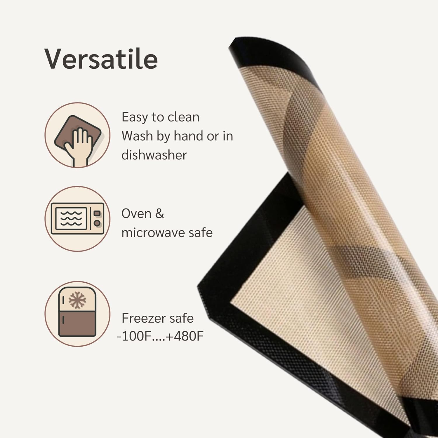 • 🧁 DURABLE - extra thick baking mats are freezer safe, can be used in oven and microwave up to 480F