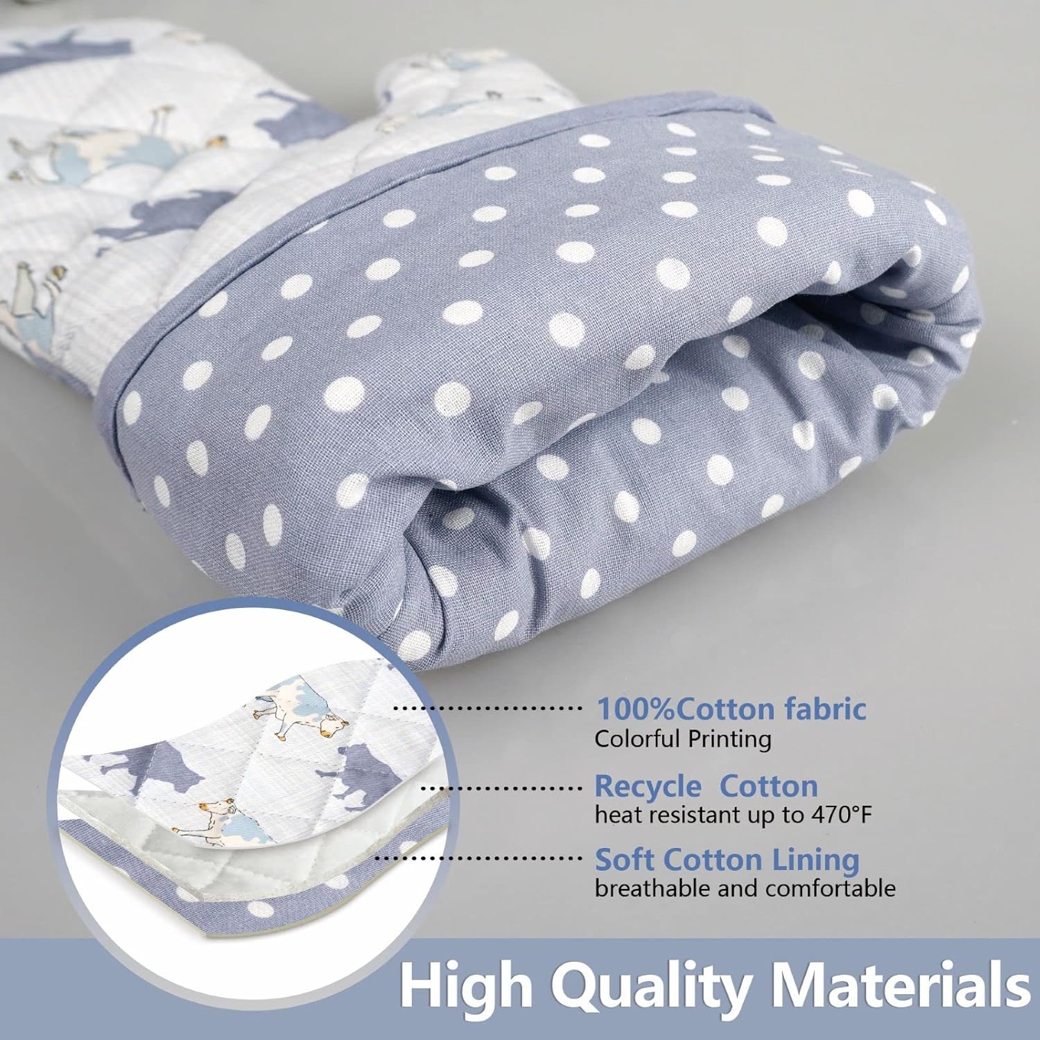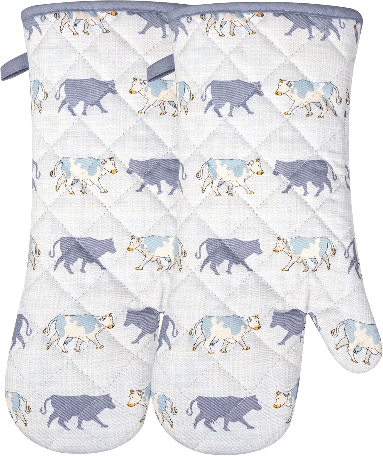 Oven Mitts Cotton Fashion Cute Cow Design 1pair Heat Resistant Oven Gloves Safe Cooking Baking Grilling Barbecue Machine Washable Pot Holders (Cow)
