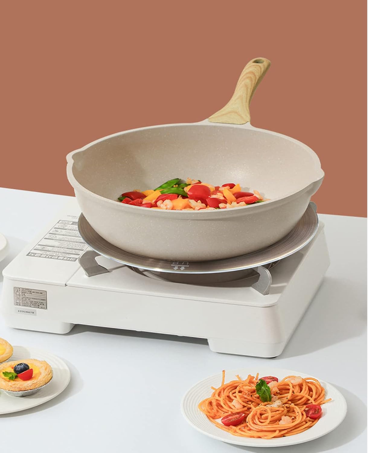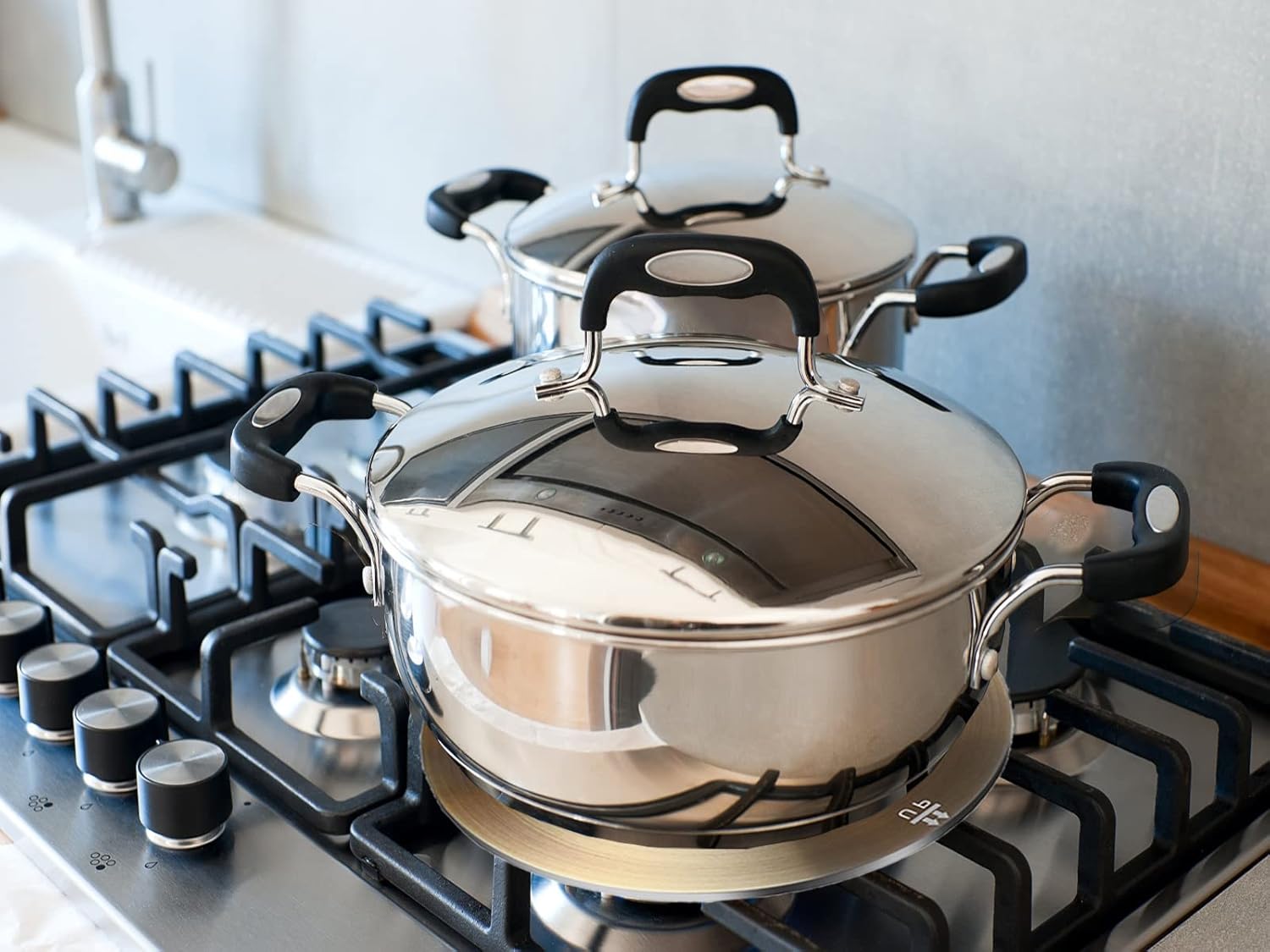 • Good Material: The inner of heat diffuser consists of three layers. The upper and the bottom layers are stainless steel, bonus the middle is made of premium aluminum materials for excellent heat distribution. Keep the natural taste for food.