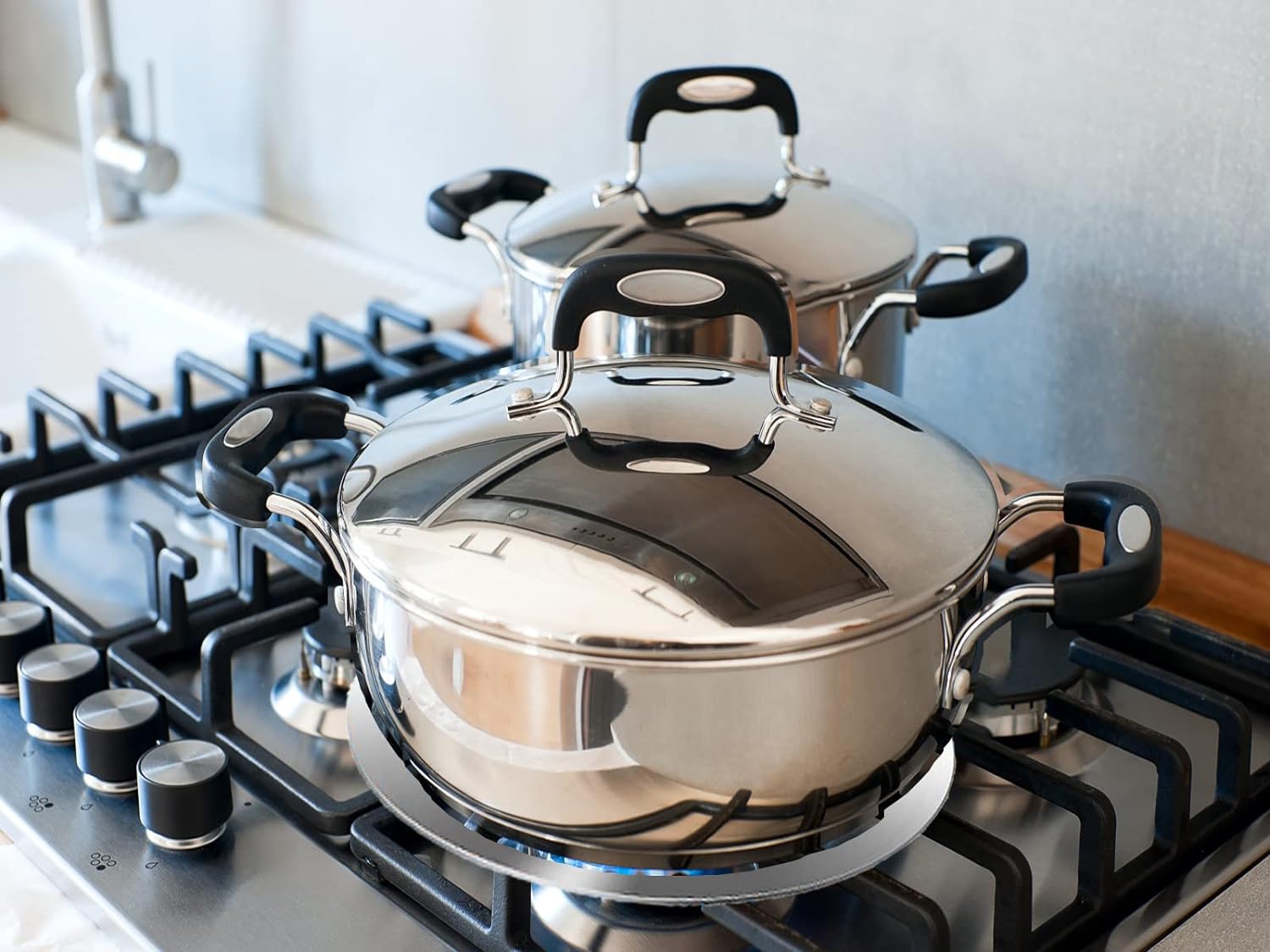 • Good Material: The inner of heat diffuser consists of three layers. The upper and the bottom layers are stainless steel, bonus the middle is made of premium aluminum materials for excellent heat distribution. Keep the natural taste for food.