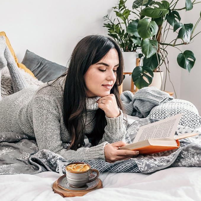 • ELEGANT EXTERIOR DESIGN: These espresso cups feature a stylish gray striped exterior and a warm brown interior that adds a touch of sophistication to your coffee experience. The two-tone color combination complements any décor