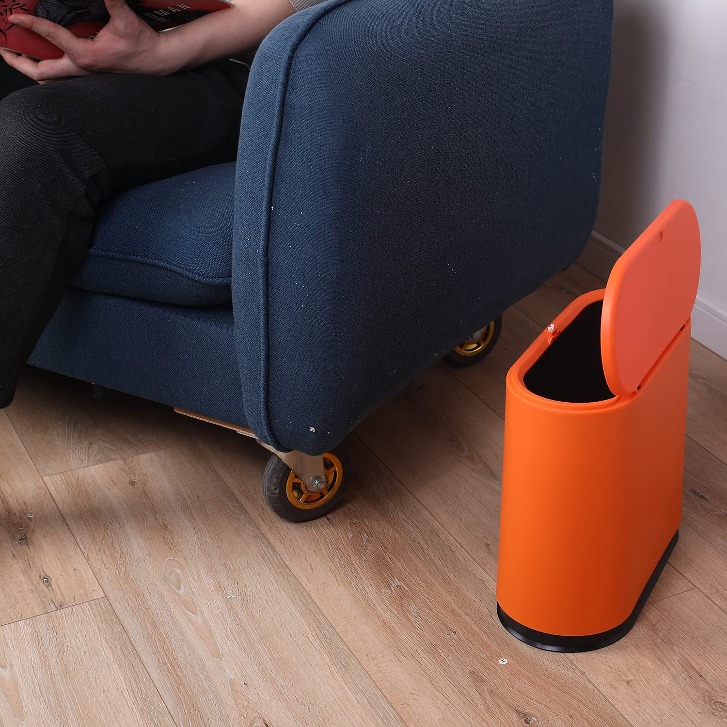 Sooyee 10 Liter Rectangular Plastic Trash Can Wastebasket with Press Type Lid,2.4 Gallon Garbage Container Bin for Bathroom,Powder Room,Bedroom,Kitchen,Craft Room,Office,Orange
