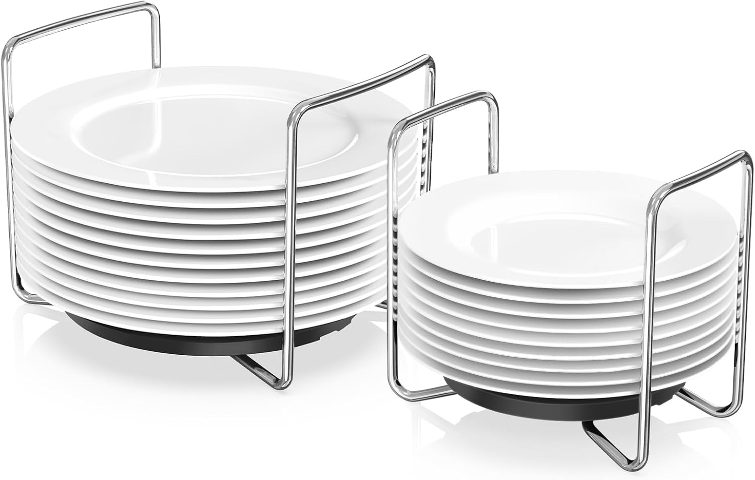 • 【PROTECT YOUR PLATES】This dish organizer rack prevents plates from sliding when opening and closing drawers. It can be used in cabinets, shelves, cupboards, countertops, and corners, offering a stacking-up design for efficient dish storage.