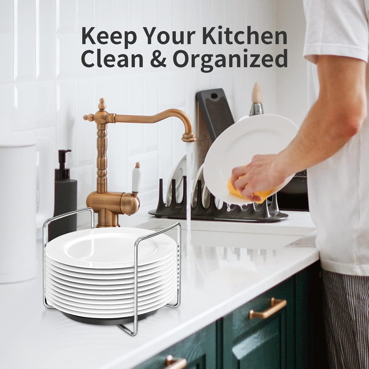 • 【ECO-FRIENDLY SUPERIOR MATERIAL】Made of high-quality bamboo and stainless steel 304, this plate organizer is durable and environmentally friendly, making it an essential home accessory.