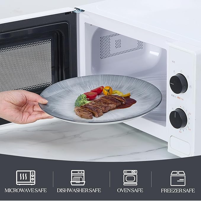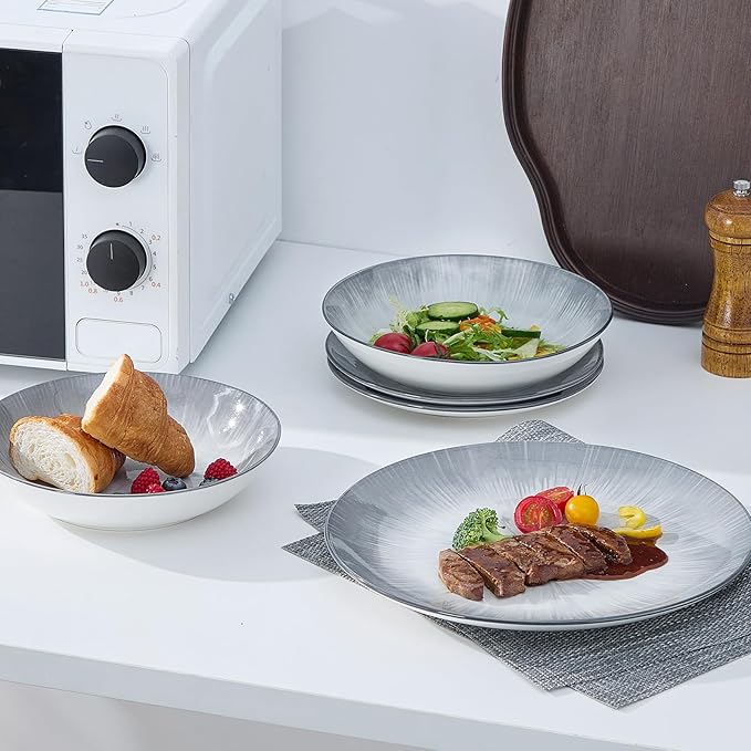 • A VERSATILE STYLE FOR MULTIPLE OCCASIONS - Modern and Stylish Porcelain dinnerware sets can match any kinds of table linen and suitable for dessert, salad, snack, appetizers, raw veggies, sushi, lunch, steak, bread & butter and any other goodies you want to showcase for any occasions or just for everyday use