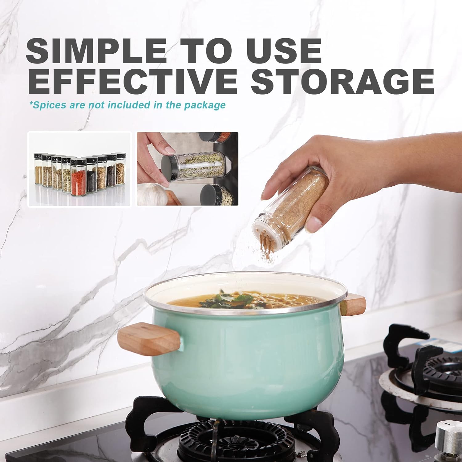 • SAFE MATERIAL AND GOOD SEAL - SPICE RACK is made of stainless steel. Spice jars is made of lead-free glass,plastic ,durable and stable. You can turn the lid to use, or you can close it to keep your spices fresh.