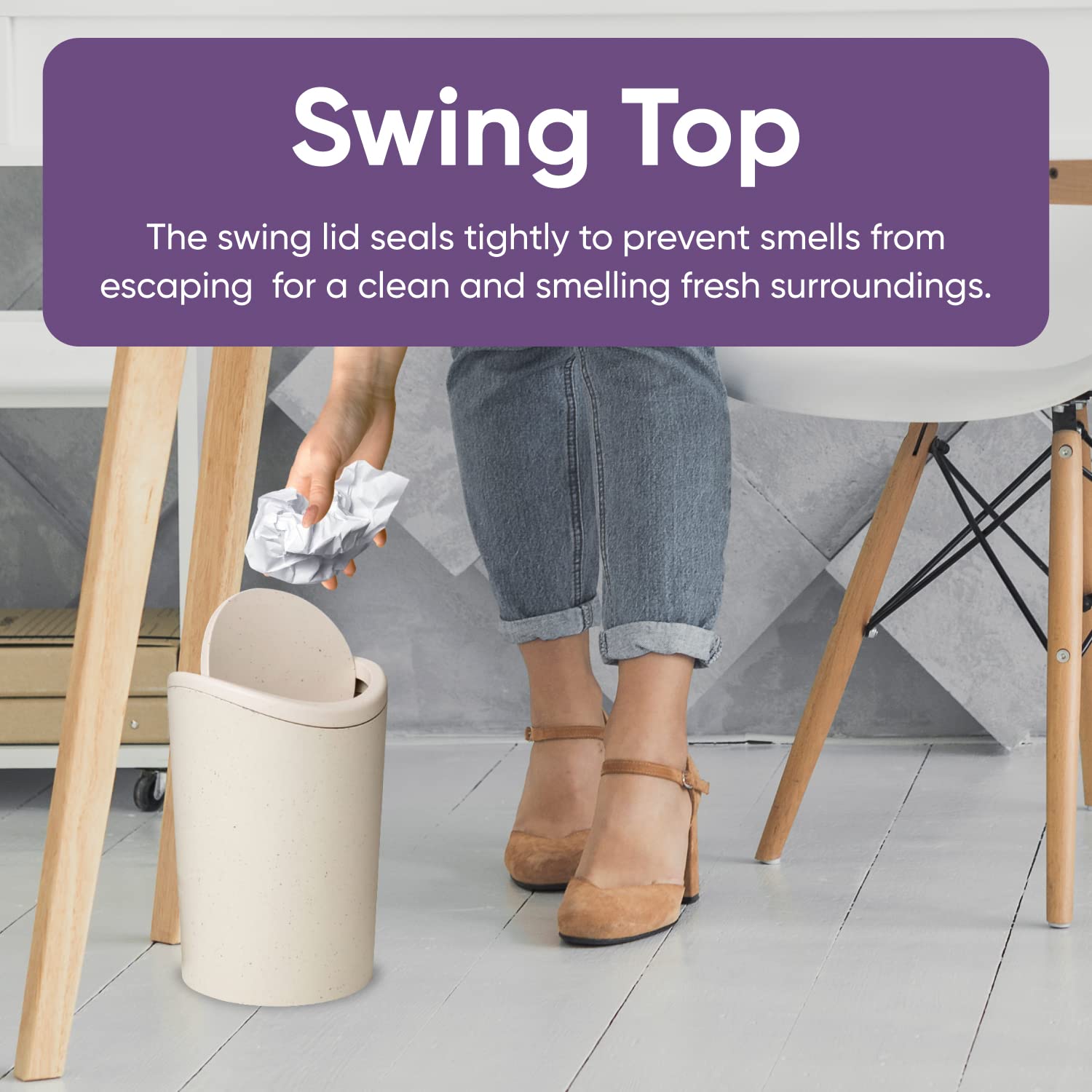 • Fits nearly everywhere - Keep your garbage concealed in cupboards, behind counters, or other compact locations to maximize your space. In your bathroom, bedroom, or workplace, this small swing top garbage can won't take up much space, yet it looks stylish and easily fits into tight locations.