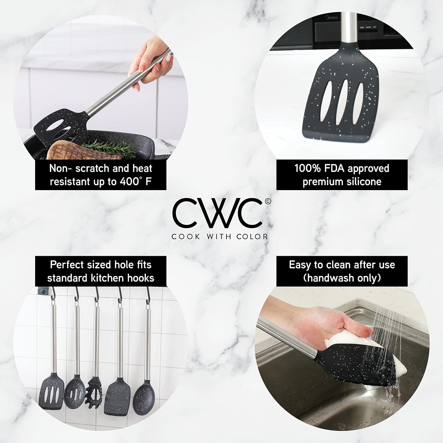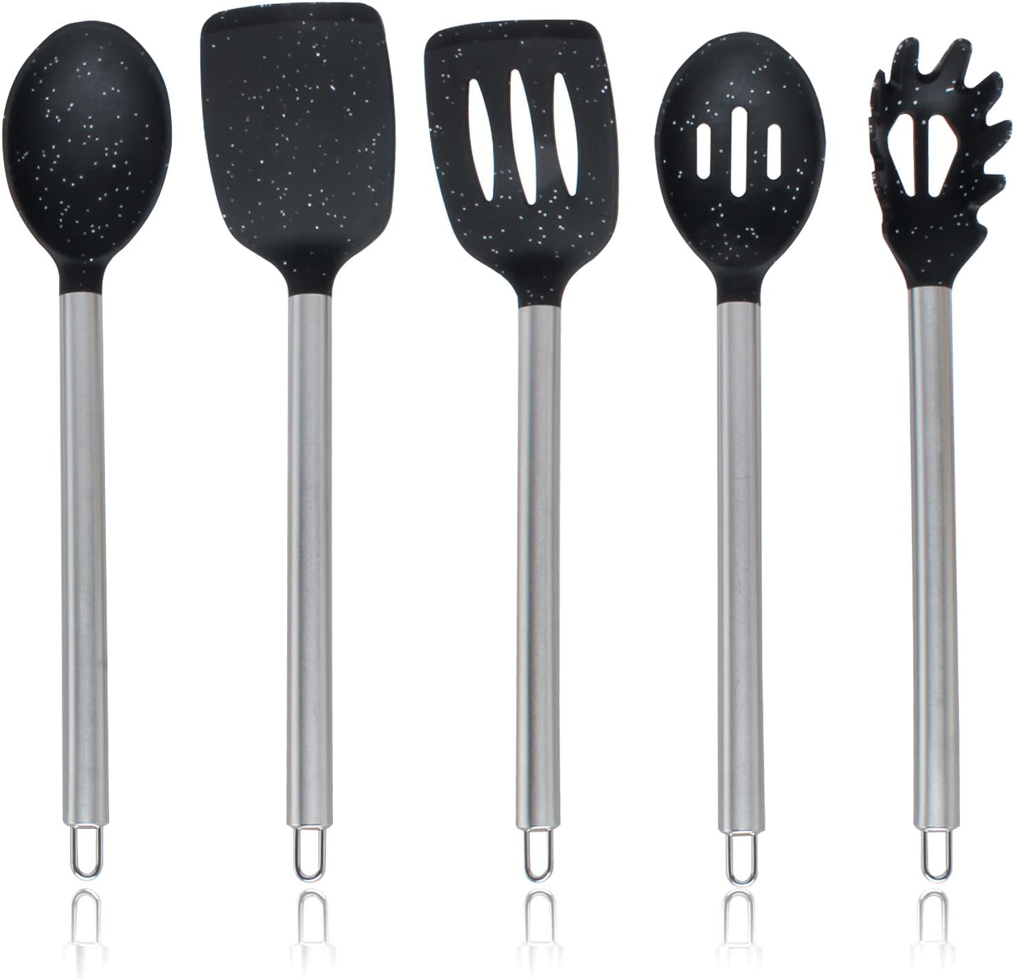 COOK WITH COLOR Silicone Cooking Utensils, Kitchen Utensil Set, Easy to Clean Silicone Kitchen Utensils, Cooking Utensils for Nonstick Cookware, Kitchen Gadgets Set, 5 Pieces, Speckled Black
