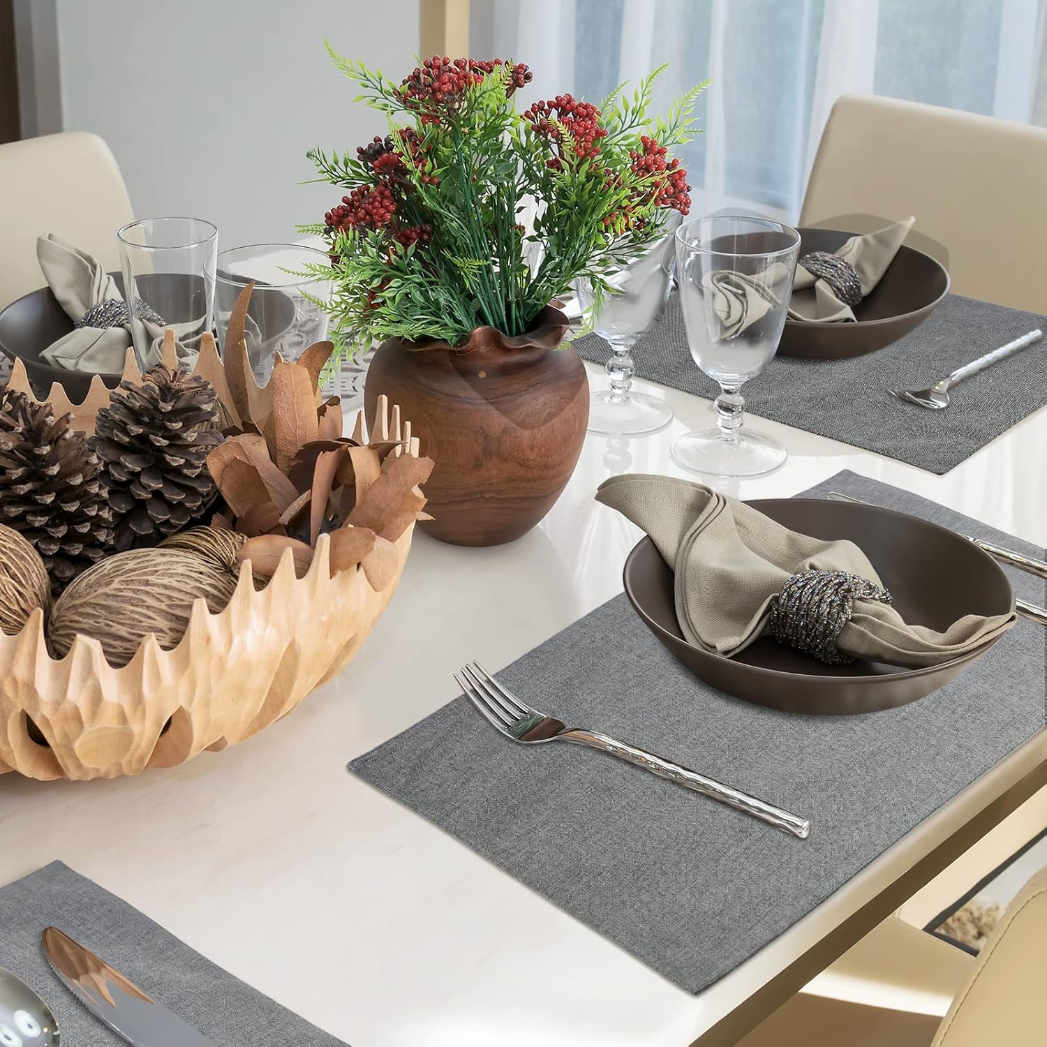 • Value Set: what you will receive are 12 pieces of place mats in dark gray, naturally adding a touch of farmhouse to the dining table; Sufficient quantities and moderate sizes can fully meet your daily use or replacement needs, protecting your tables from crumbs and stains