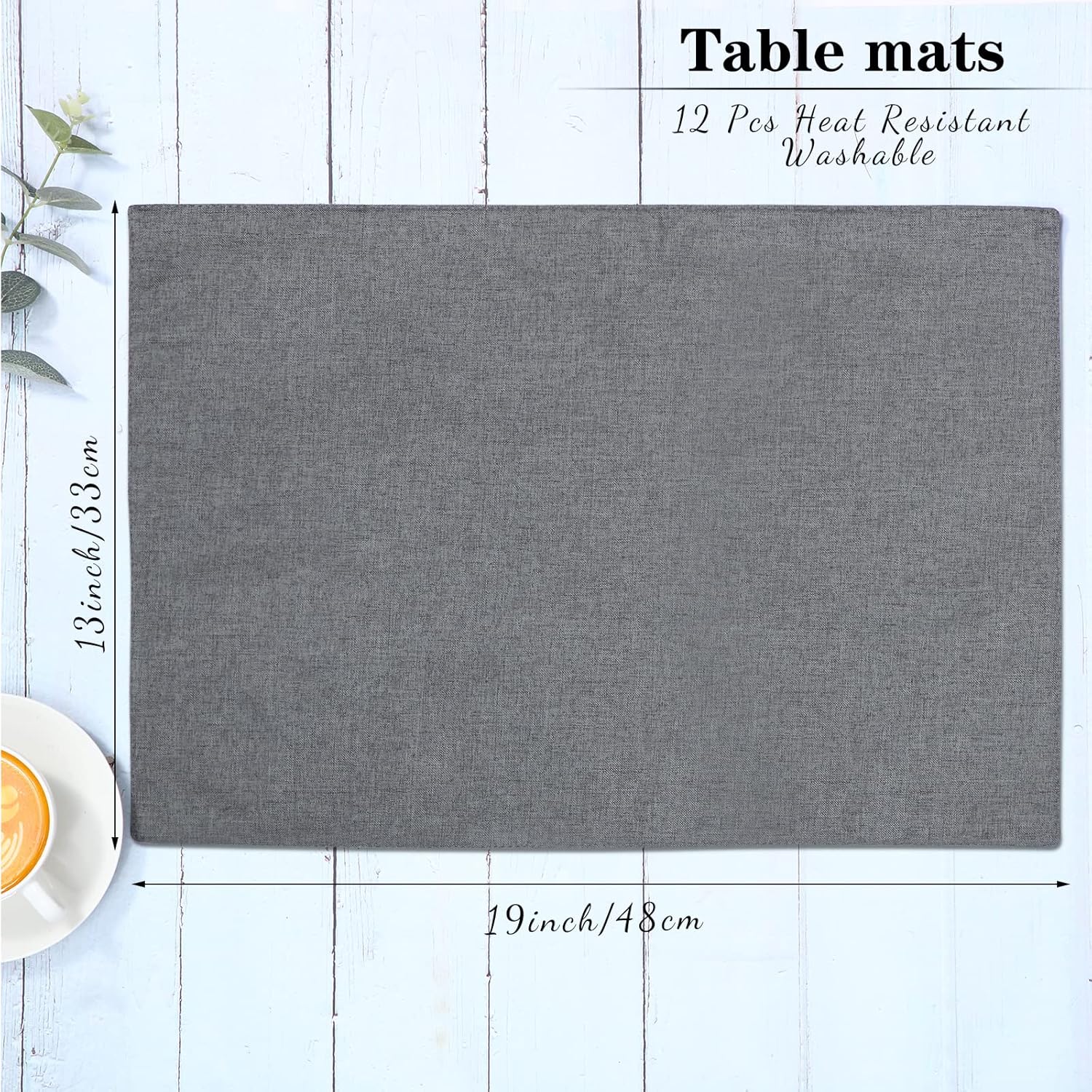 Sieral Cloth Placemats Set of 12 Rectangle Dining Table Placemats Bulk 13 x 19 Inch Machine Washable Heat Resistant Cotton Linen Table Mats for Wedding Baby Shower Birthday Party Supplies(Dark Gray)