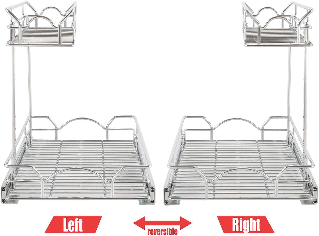 • REVERSIBLE DESIGN WORKS IN EITHER THE RIGHT OR LEFT SIDE of cabinets, at the same time, the under sink pull out shelf that makes room for pipes and garbage disposers are more suitable for making use of the space under the sink.