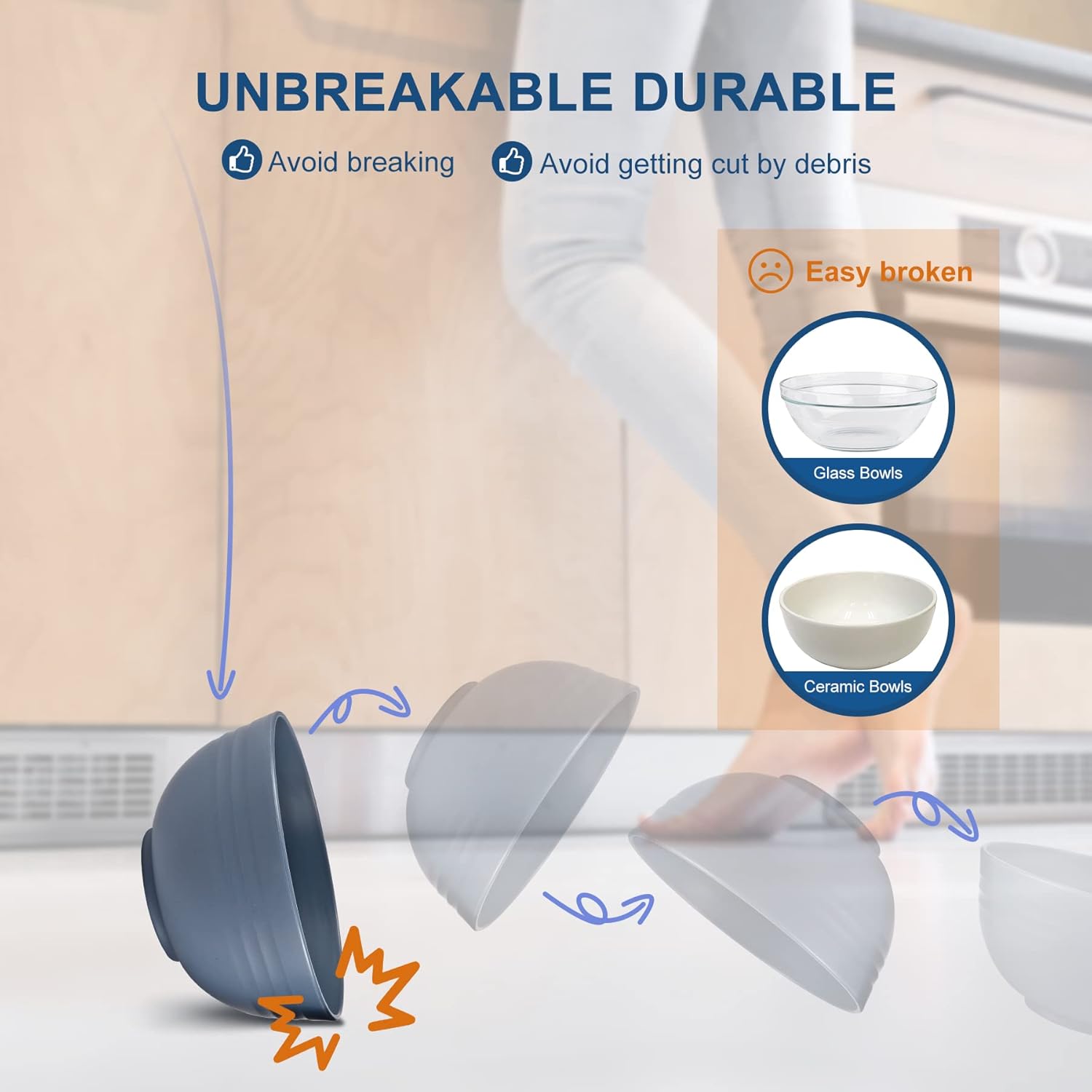 • 【Multicolor with 26 Oz Capacity】: These bowls come in a variety of vibrant colors and have a 26 oz capacity. They are deep enough for breakfast dishes like milk with corn flakes and also perfect for serving salads, fruits, rice, and noodles without any spillage. Enjoy your everyday meals at home or outdoors.