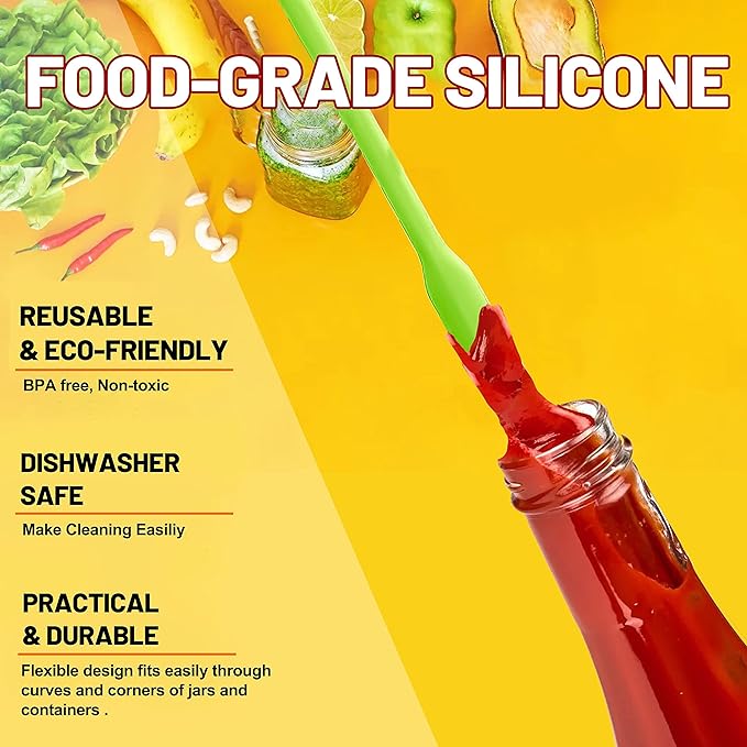 • FLEXIBLE SPATULA - Anaeat silicone spatulas designed with narrow soft heads and long body that can reach many bottles and jars to get every drop out of your container. UPGRADED PROPER BALANCE BETWEEN FLEXIBLE AND STURDY