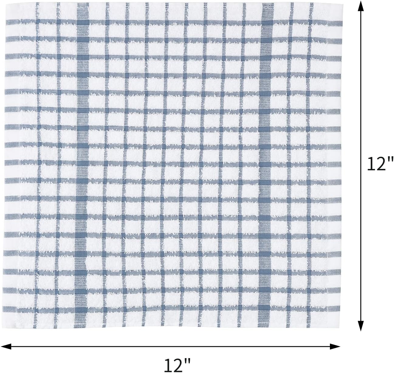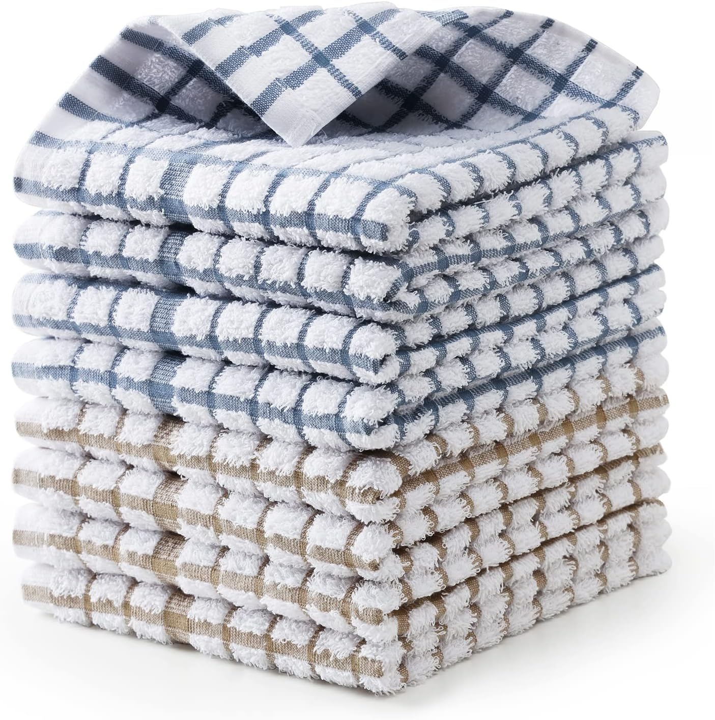 Egles 8 Packs Kitchen Dishcloths, 100% Cotton Grid Terry Dish Cloths 12" x 12" Ultra Soft Super Absorbent Dishrag Reusable Dishcloth, Multi-Purpose Quick Drying Hand Dish Towel Set with Hanging Loop