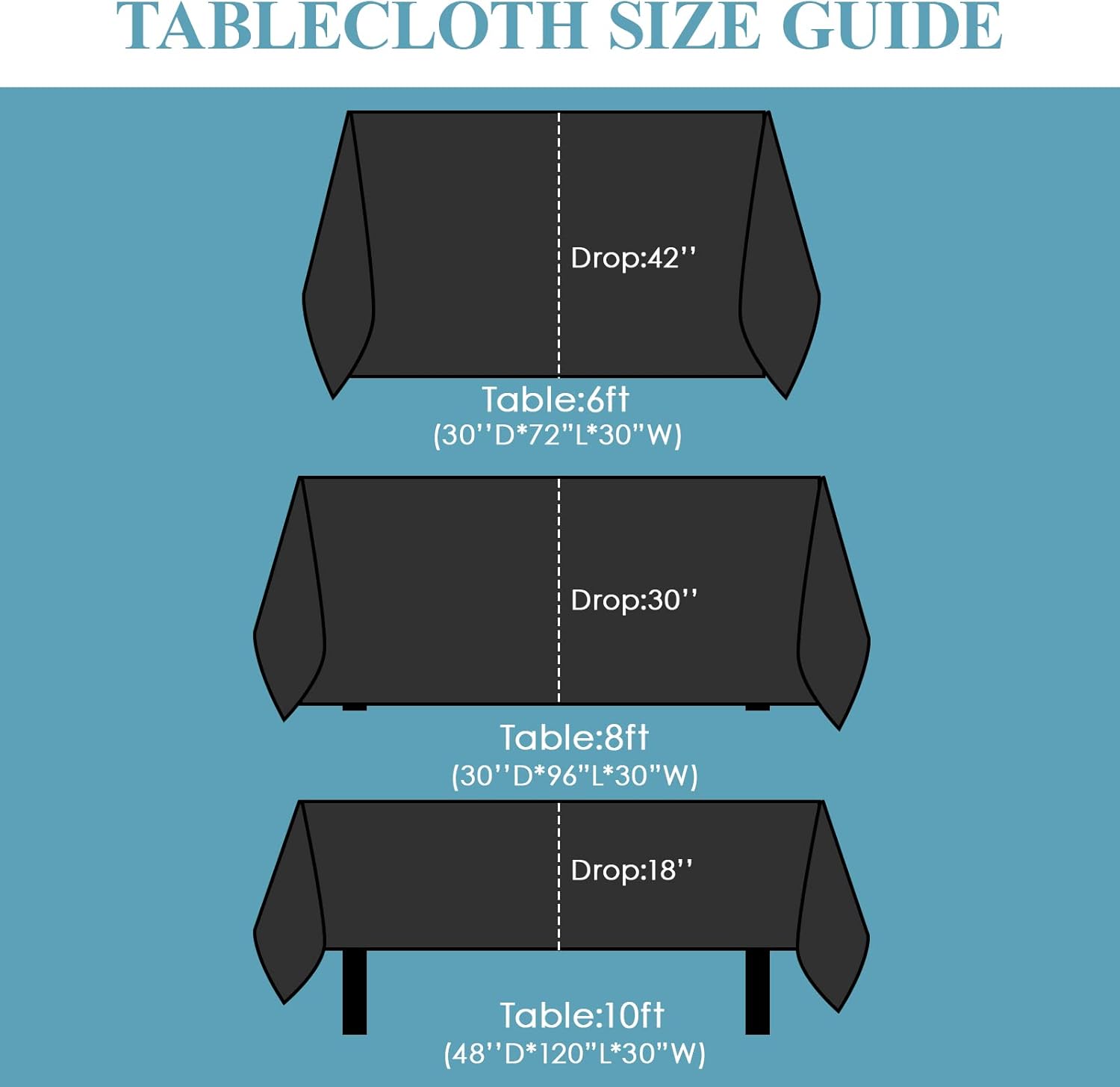 • Product Size: 90*156inch black rectangular tablecloth for 6ft table and 8ft dining table, according to the effect you want to use the tablecloth, and the size of your dining table, choose the right size tablecloth
