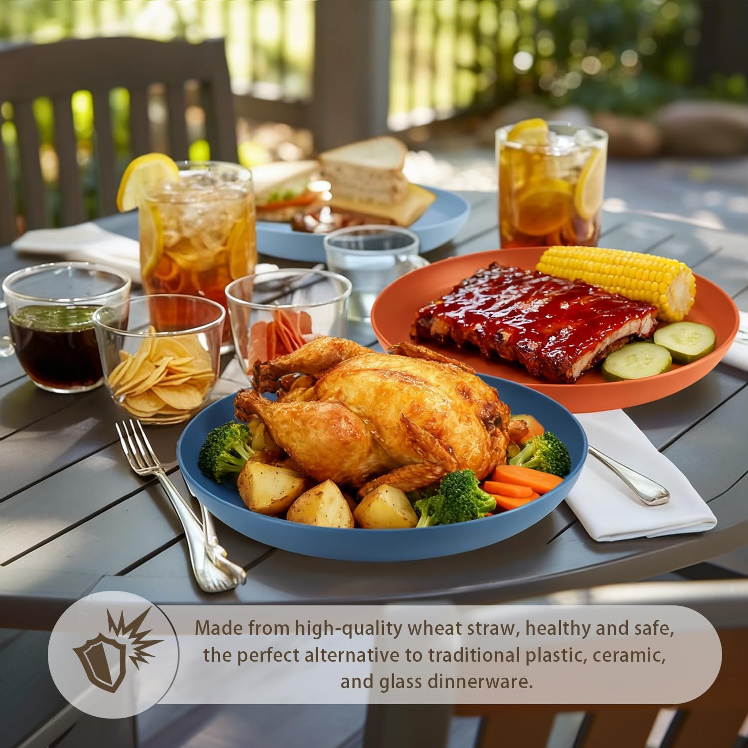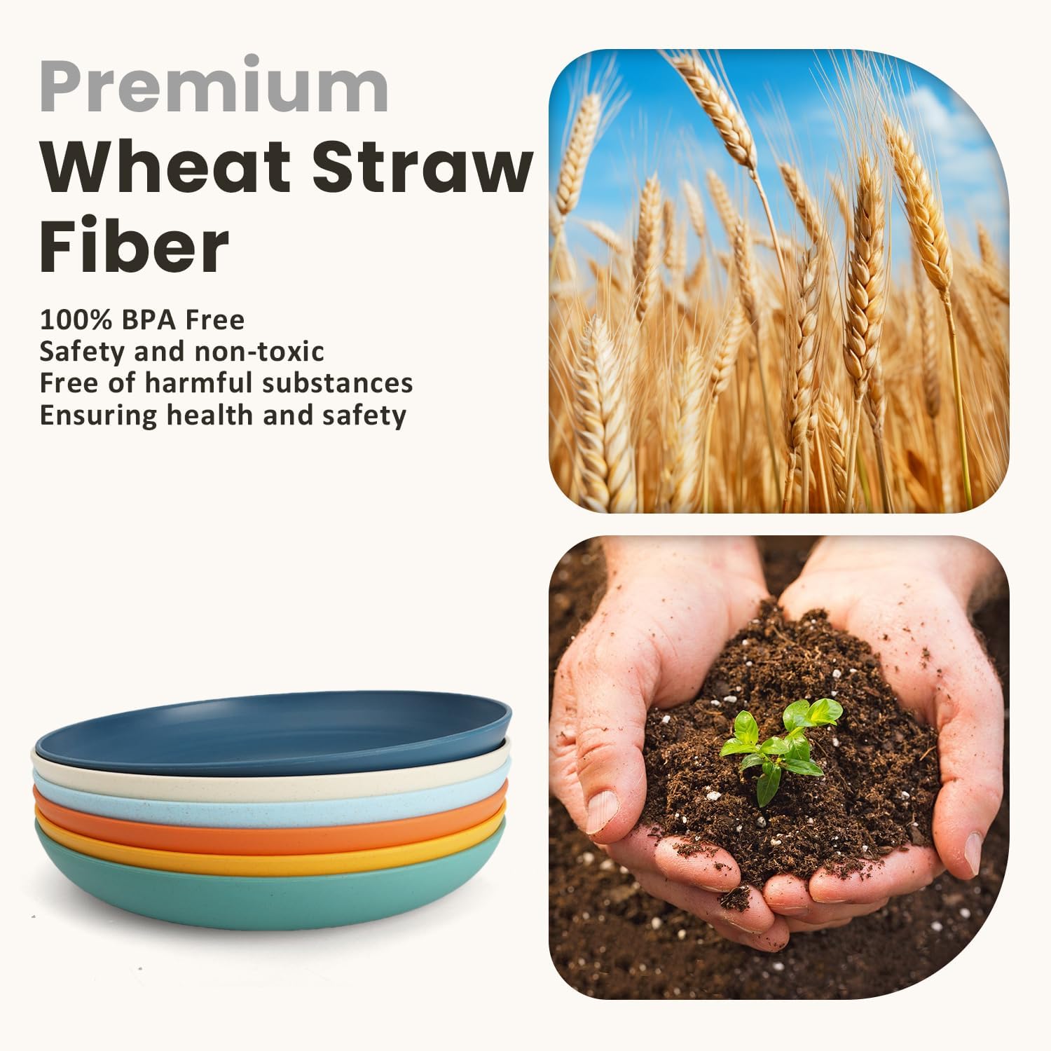• 𝐖𝐡𝐞𝐚𝐭 𝐒𝐭𝐫𝐚𝐰 𝐌𝐚𝐭𝐞𝐫𝐢𝐚𝐥: Each 10 inch plastic plate is constructed with organic wheat straw fiber and food-grade PP, 100% BPA free, non-toxic, odorless.
