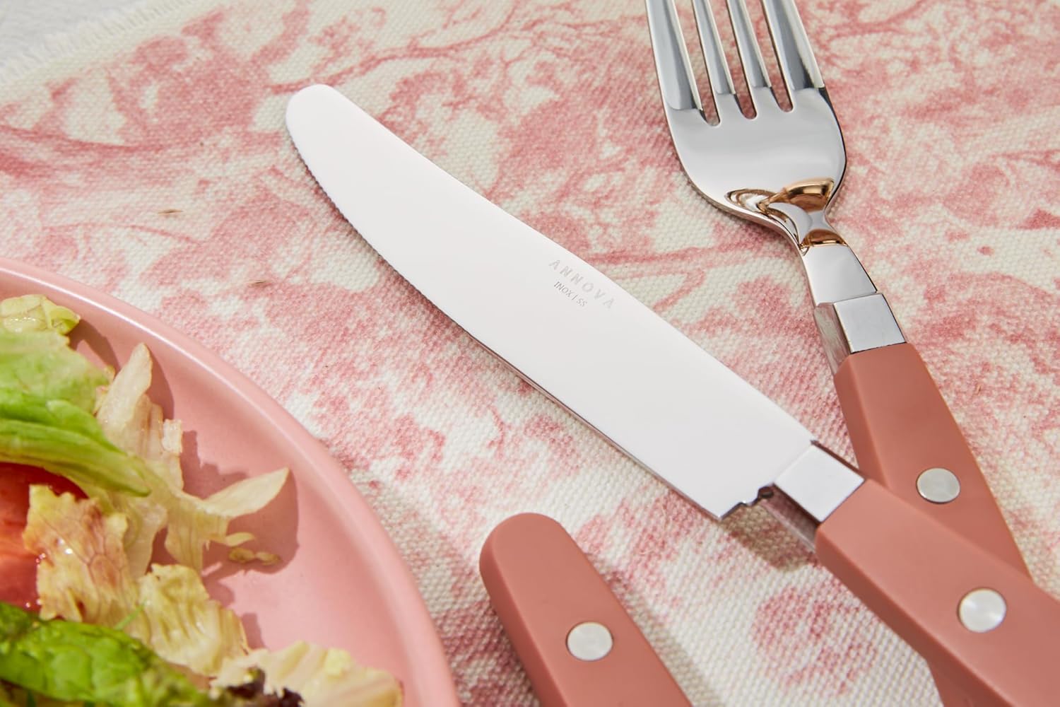 • Colorful Plastic Handles – Modern, vibrant, and colorful handles with modern rivets add a playful yet elegant touch to your table setting, perfect for brightening up everyday dining or themed gatherings.