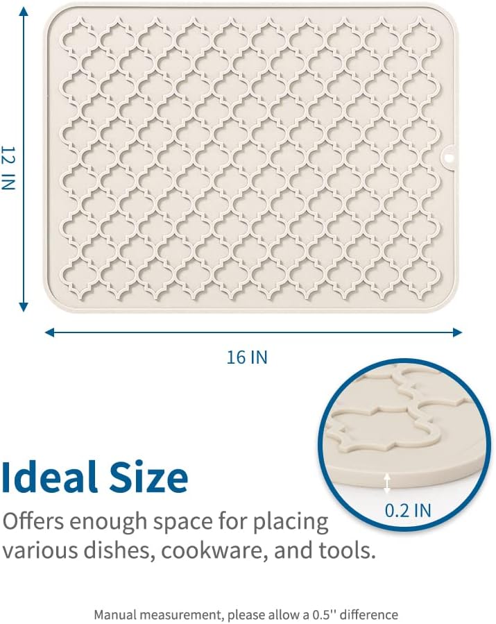 AMOAMI Dish Drying Mat,Heat-resistant,Easy Clean,Silicone Dish Drying Mats for kitchen Counter,Kitchen Gadgets Kitchen Accessories Kitchen Small Appliances (12" x 16", BEIGE)