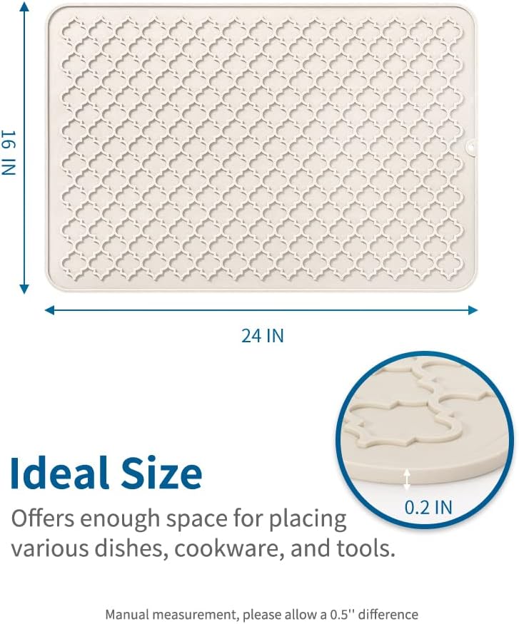 AMOAMI Dish Drying Mat,Heat-resistant,Easy Clean,Silicone Dish Drying Mats for kitchen Counter,Kitchen Gadgets Kitchen Accessories Kitchen Appliances (16" x 24", BEIGE)