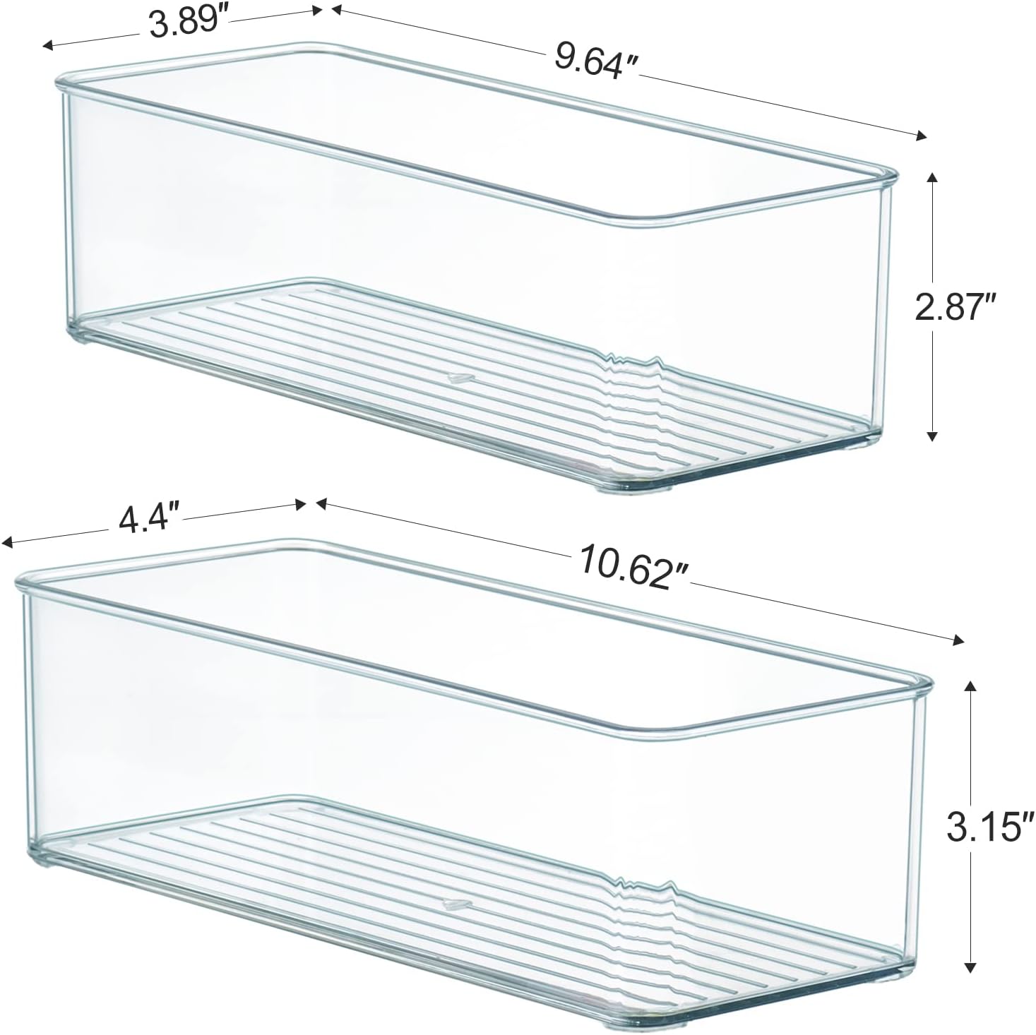• This set of storage bins contains 2 sizes (4S + 4M) to meet various scenarios, The sizes are designed for little stuffs in bathroom, drawer, fridge or pantry.