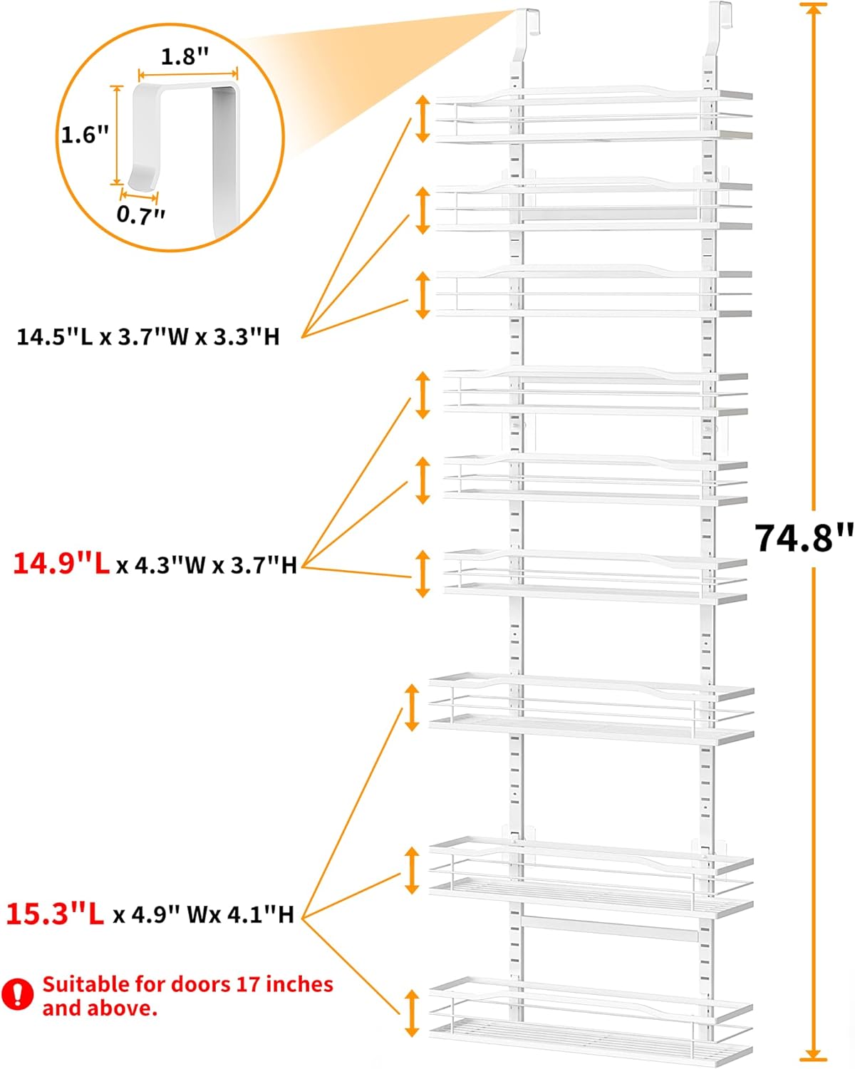 • Maximize Your Space: Our 9-Tier over the door pantry organizer is designed to make the most of your storage space, allowing you to store more items in a smaller area such as spice and some jars. Perfect for small kitchens or those with limited storage space.