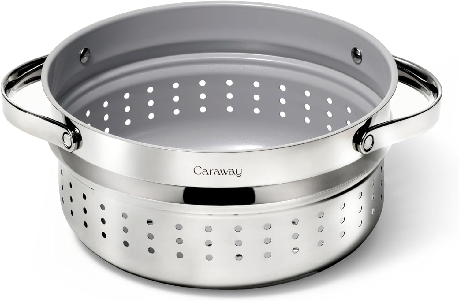 • DURABLE CONSTRUCTION: Made with high-quality stainless steel, the Caraway Steamer for pots is designed to withstand the rigors of everyday use, ensuring that it will be a long-lasting addition to your kitchen.