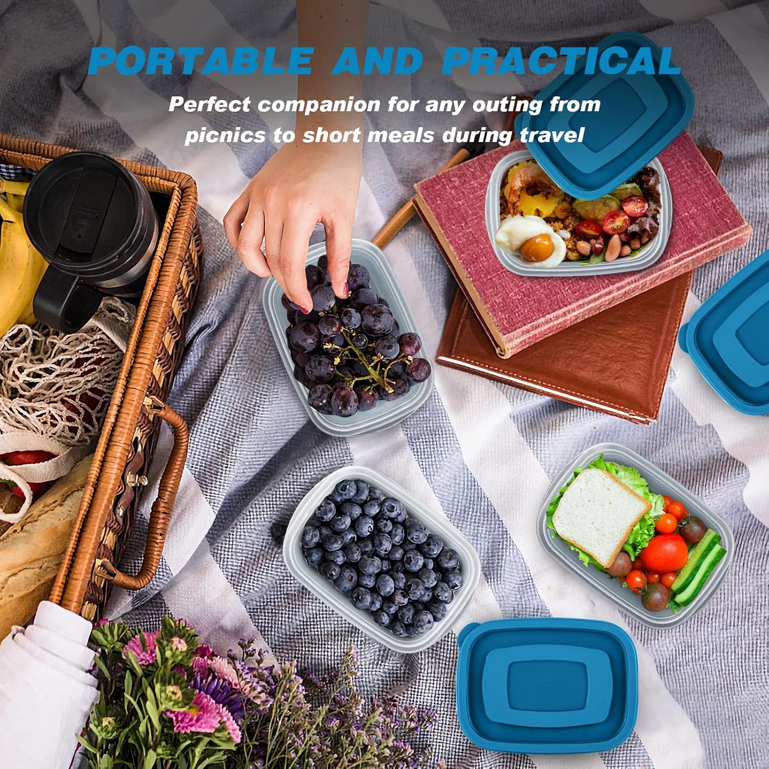 • 【Perfect Specifications】:Storage Box set consists of 20 transparent plastic with blue lids.Each size:( 5.32 x 3.93 x 1.96in,0.53 Quarts,500ML),which can meet your different needs,from storing fruits to preparing dishes.