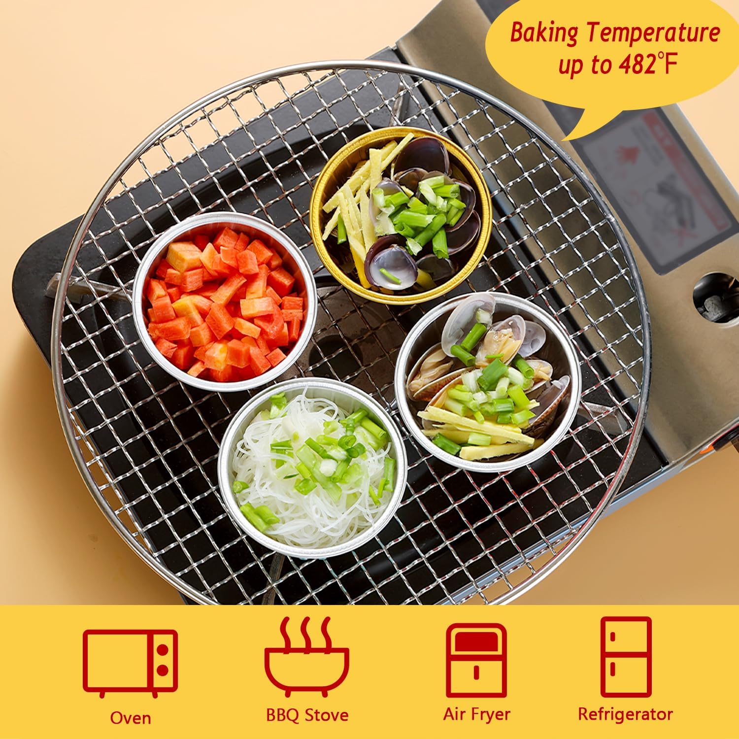 • 【Mini Aluminum Foil Baking Tins】 - These jumbo muffin cups are made of food-grade aluminum foil that has excellent thermal conductivity, shortening baking time. They are oven, grill, air fryer and refrigerator safe and can withstand temperatures of up to 250℃/482℉.(NOTE:The clear lids are not heat resistant!)
