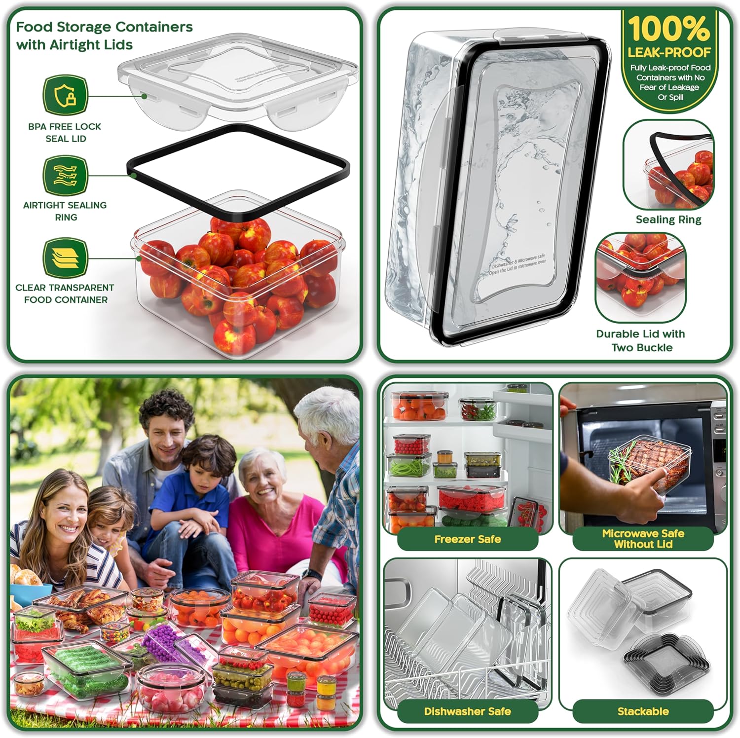 RockBerry 50 Pcs Large Food Storage Containers with Lids Airtight-85 OZ to Small Containers-Total 526 Oz BPA Free Plastic Stackable Containers For Pantry kitchen Organization, Microwave Safe