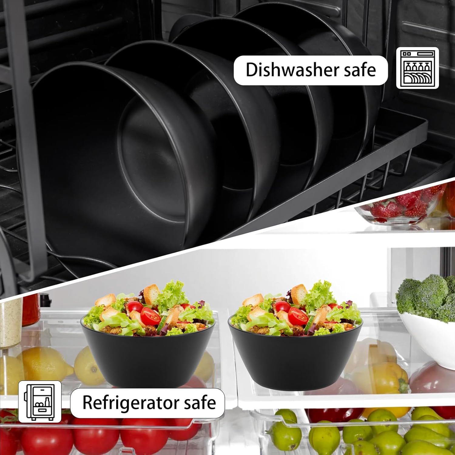 supernal 12PCS Black Wheat Straw Bowls - Unbreakable Reusable Plastic Soup & Cereal Straws Bowls,Fridge and Dishwasher Safe Stackable,Lightweight Black Disposable Bowl for Ramen,Salads and Catering