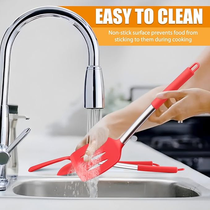 • EASY TO CLEAN & STORE - Nonstick silicone surface prevents food from sticking to them during cooking, Easy to clean by hand and dishwasher safe, Each handle has a hanging loop for easy storage, Keep your drawer space clear of clutter, Ideal gift for Christmas, Thanksgiving, housewarming