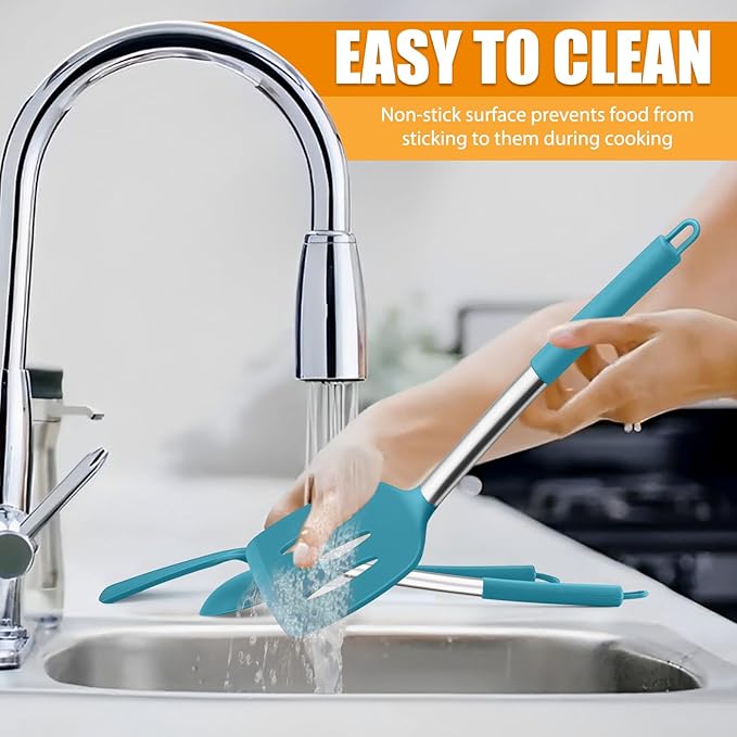 • EASY TO CLEAN & STORE - Nonstick silicone surface prevents food from sticking to them during cooking, Easy to clean by hand and dishwasher safe, Each handle has a hanging loop for easy storage, Keep your drawer space clear of clutter, Ideal gift for Christmas, Thanksgiving, housewarming