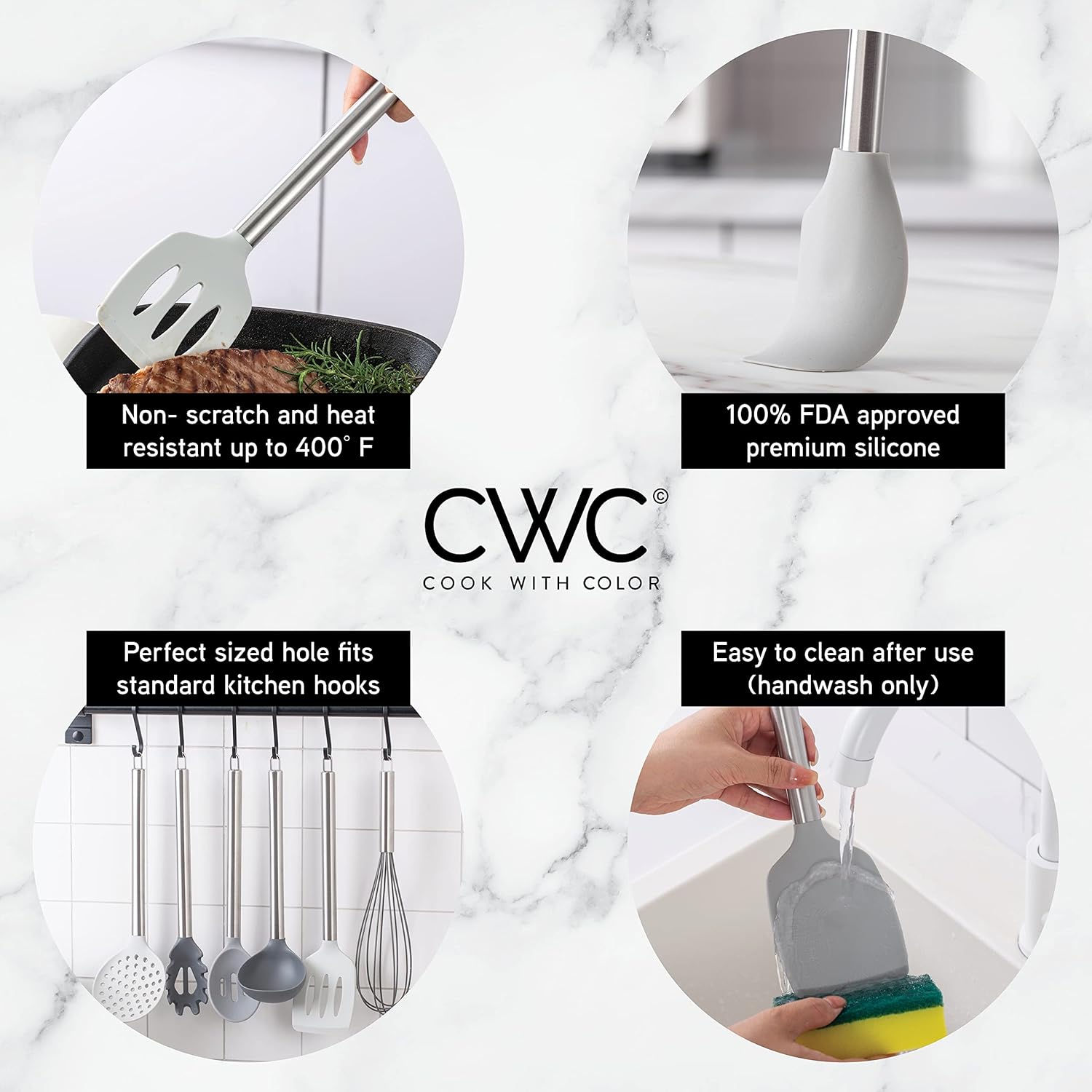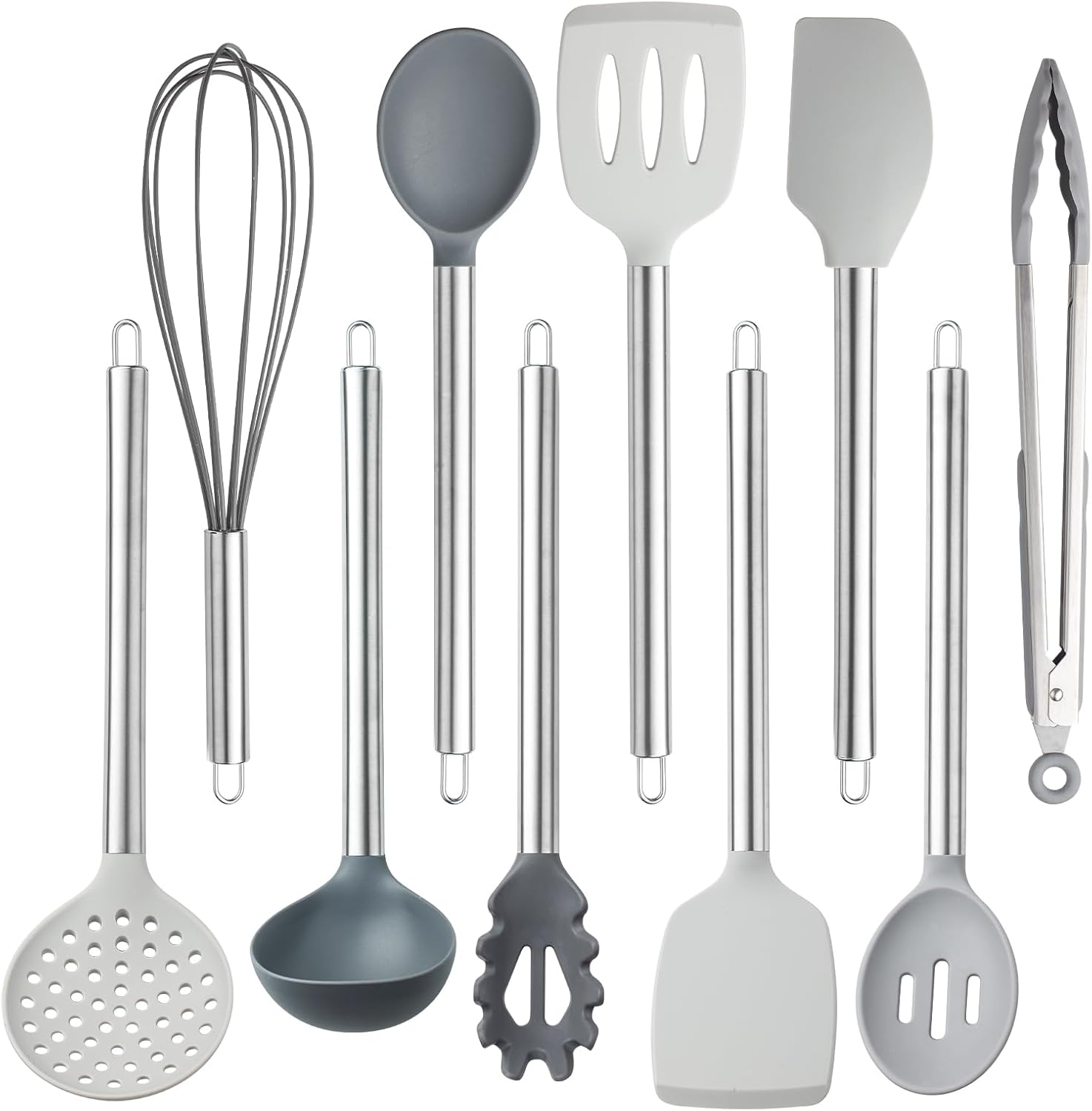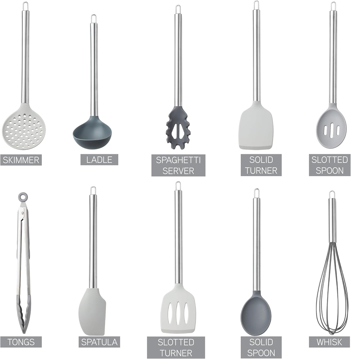 COOK WITH COLOR Silicone Cooking Utensils, Kitchen Utensil Set, Easy to Clean Silicone Kitchen Utensils, Cooking Utensils for Nonstick Cookware, Kitchen Gadgets Set, 10 Pieces, Grey Ombre