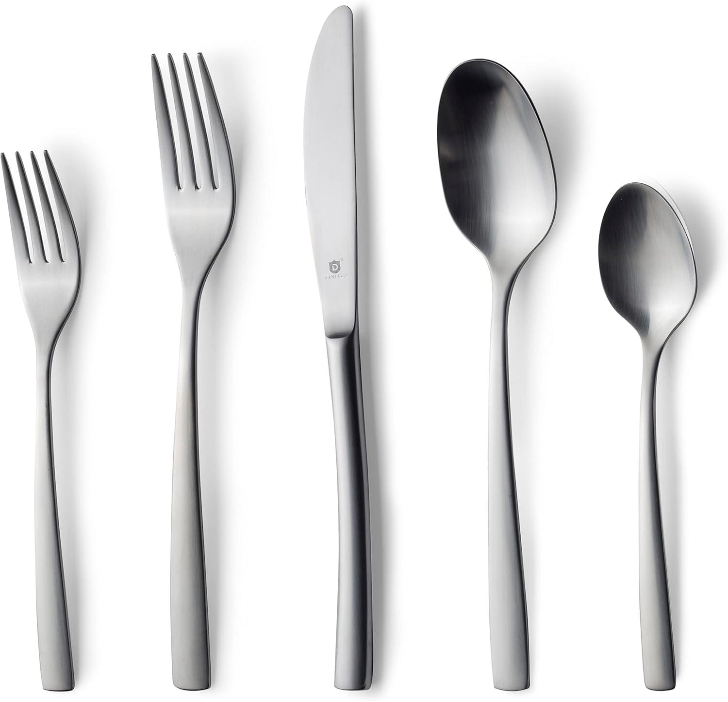 Matte Silverware Set, 18/10 Stainless Steel Satin Flatware, Modern Brushed Finish Cutlery, Dishwasher Safe & Durable, Built to Last (60-Piece, Sleek)