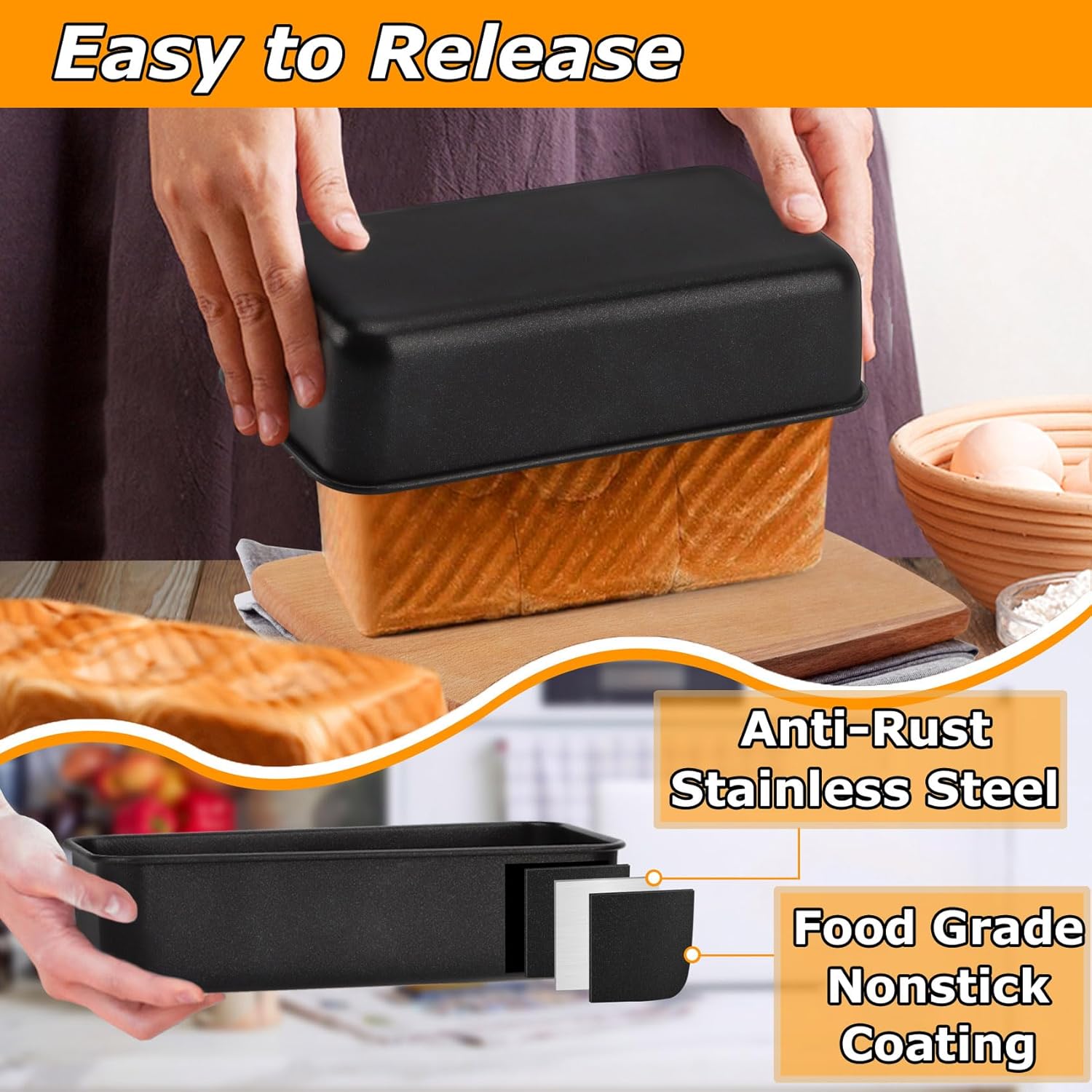 • Easy Clean, nonstick coating loaf pans make cleaning up a breeze, especially since nothing sticking the bottom, use dish detergent and soft sponges by hand washing and dishwasher safe to save labor and time, a great alternative to foil, glass, aluminum, Pullman and cast iron loaf pan