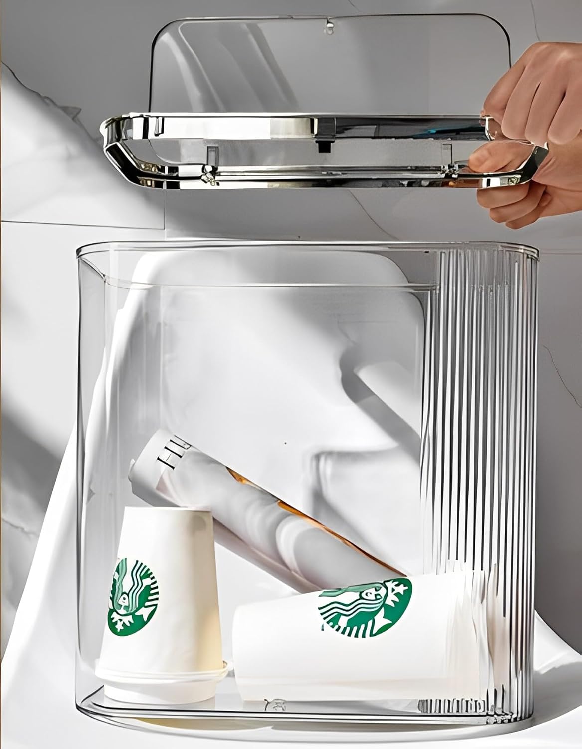 • 【FITS ALMOST ANYWHERE】 A stylish trash can with unique transparent design that easily see where the garbage is located,make your space more unique and slim design easily fits into narrow openings and small spaces.