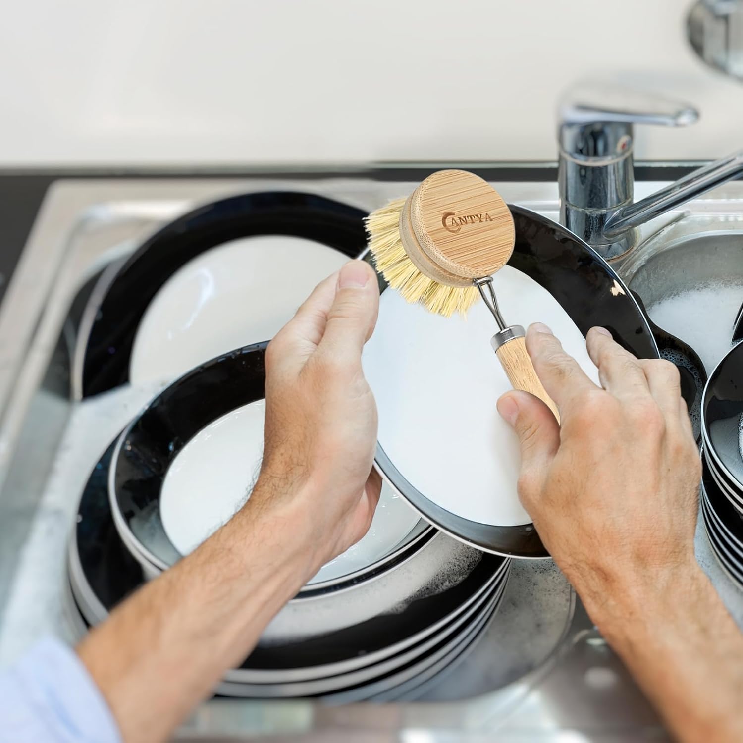 • 【Material】 dish brushes is made of 100% natural bamboo and sisal, compostable and environmentally friendly.
