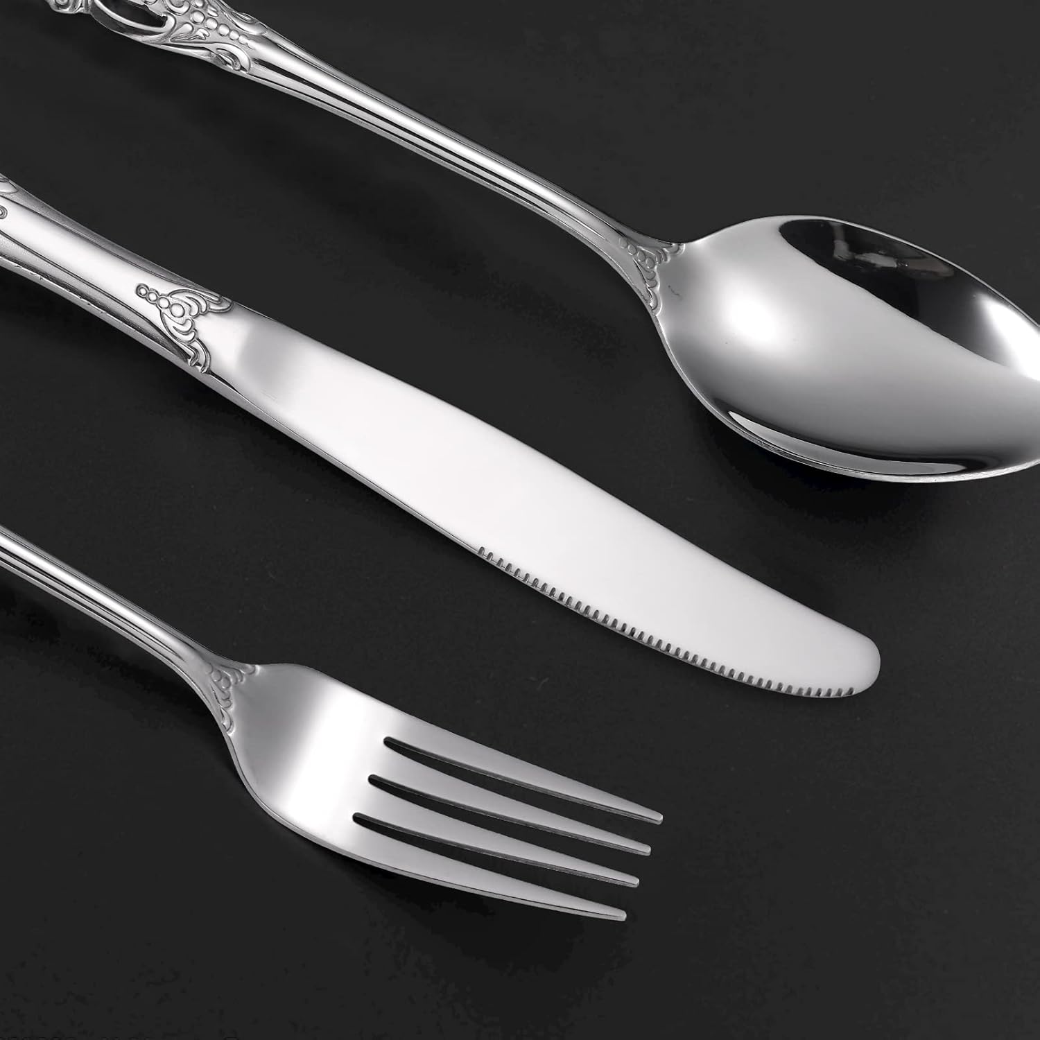 • DISHWASHER SAFE FOR EASY CLEANING: Introducing the Silvery Tableware Palace Relief Embossed Handle. Made with quality material, this flatware set features a sophisticated and intricate design that will make your dining table look elegant. Plus, it's dishwasher safe, making cleaning up after meals a breeze