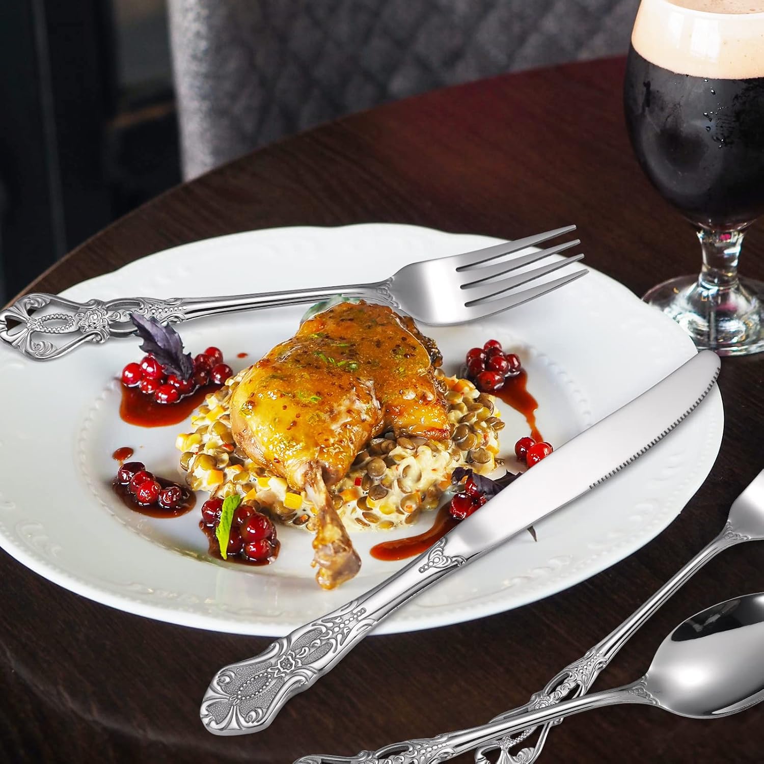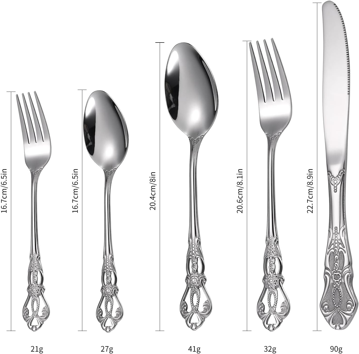 • UNIQUE DESIGN: Add a touch of elegance to your dining experience with our retro silver royal silverware. Featuring a unique design, these pieces are sure to impress your guests and elevate any meal