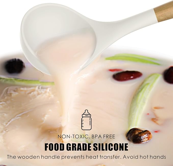 Silicone Cooking Utensils Set - 446°F Heat Resistant Silicone Kitchen Utensils for Cooking,Kitchen Utensil Spatula Set w Wooden Handles and Holder for Non-Stick Cookware (Cream White)