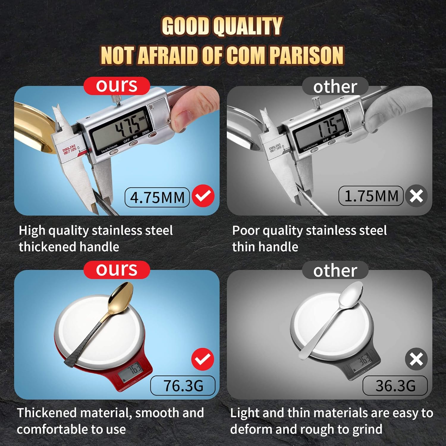 • Our Customer Service : Lemeya's mission is to meticulously craft every piece of cutlery set and provide exceptional service to every customer. Our stainless steel cutlery set provides 24 months of after-sales service, please get in touch with us if you have any problems after receiving our cutlery set, and we will solve all the problems for you within 12 hours, we are always here, wish you a happy life