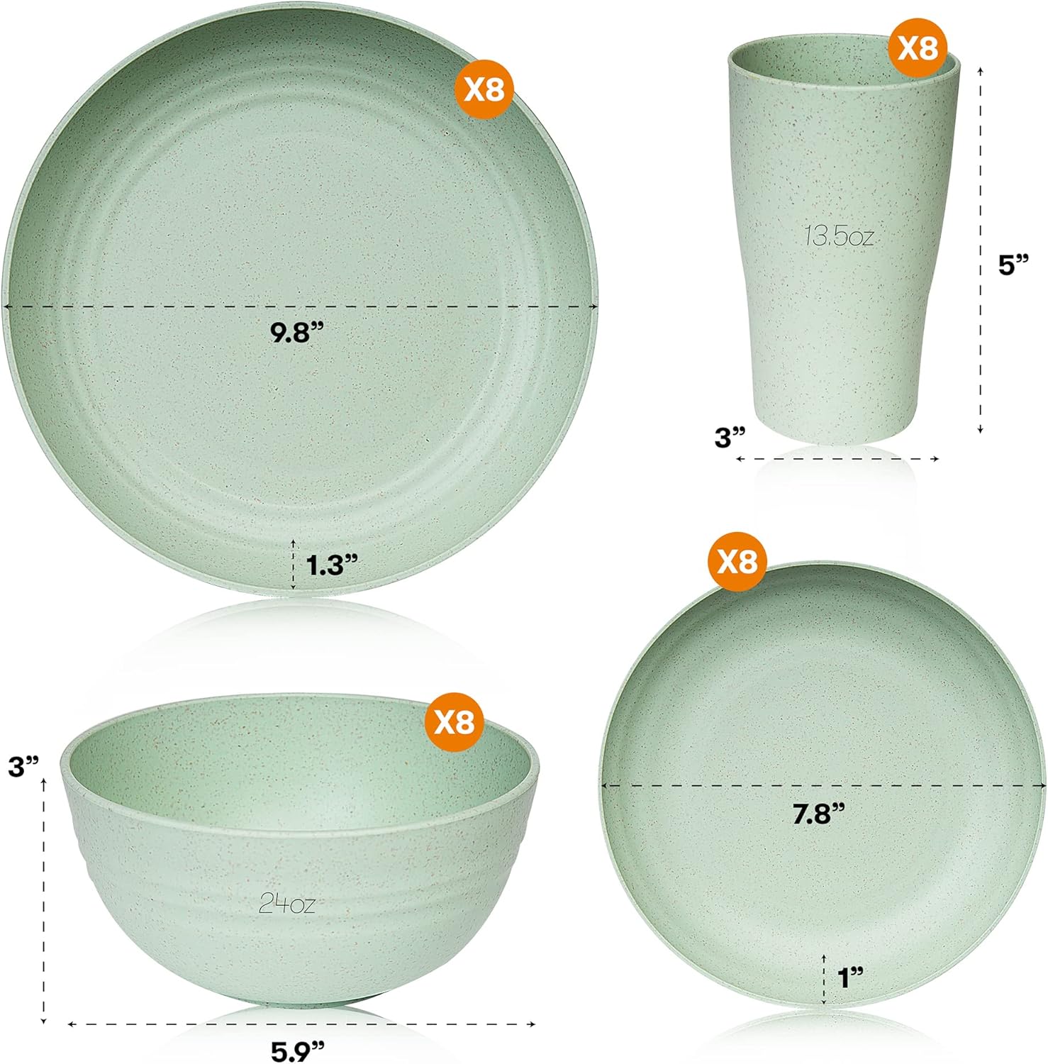 • Multipurpose Dinnerware - Our reusable dishes set for 8 are made for every occasion and will not only be great for home and kitchen use, but also convenient for an rv or camper, a picnic, BBQing, camping, work, school and much more. The unique design allows for easy compact storage as well. You can't go wrong with our wheatstraw dinnerware set.