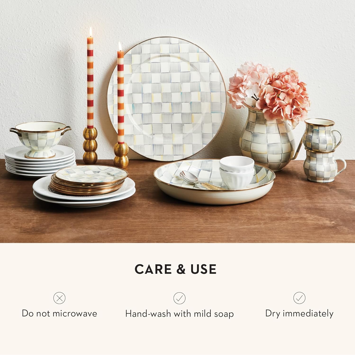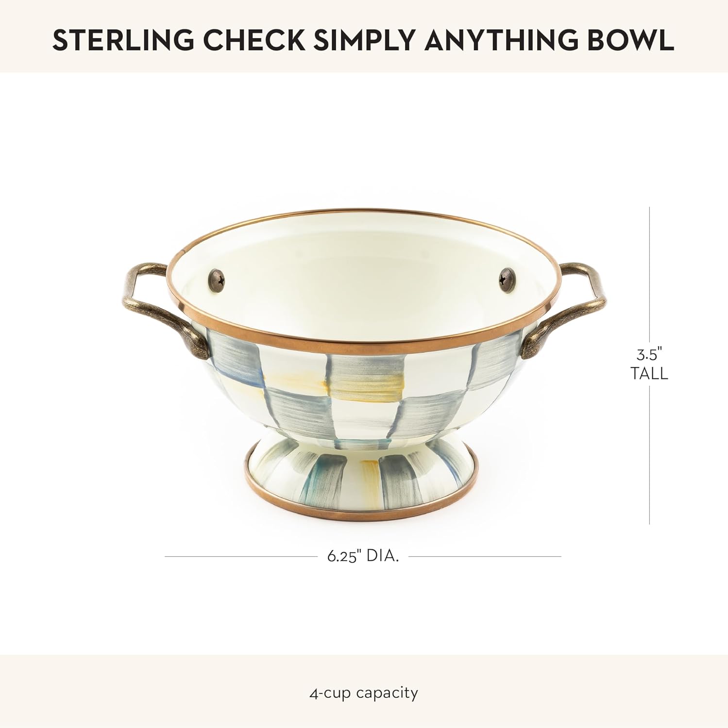 • ENTERTAINING & PARTY ESSENTIAL: Elevate any meal with the Sterling Check Enamel Bowl and its subtle color-dragged gray-and-white checks. This cute bowl has a hand-glazed heavy-gauge steel underbody and a bronzed stainless-steel rim.