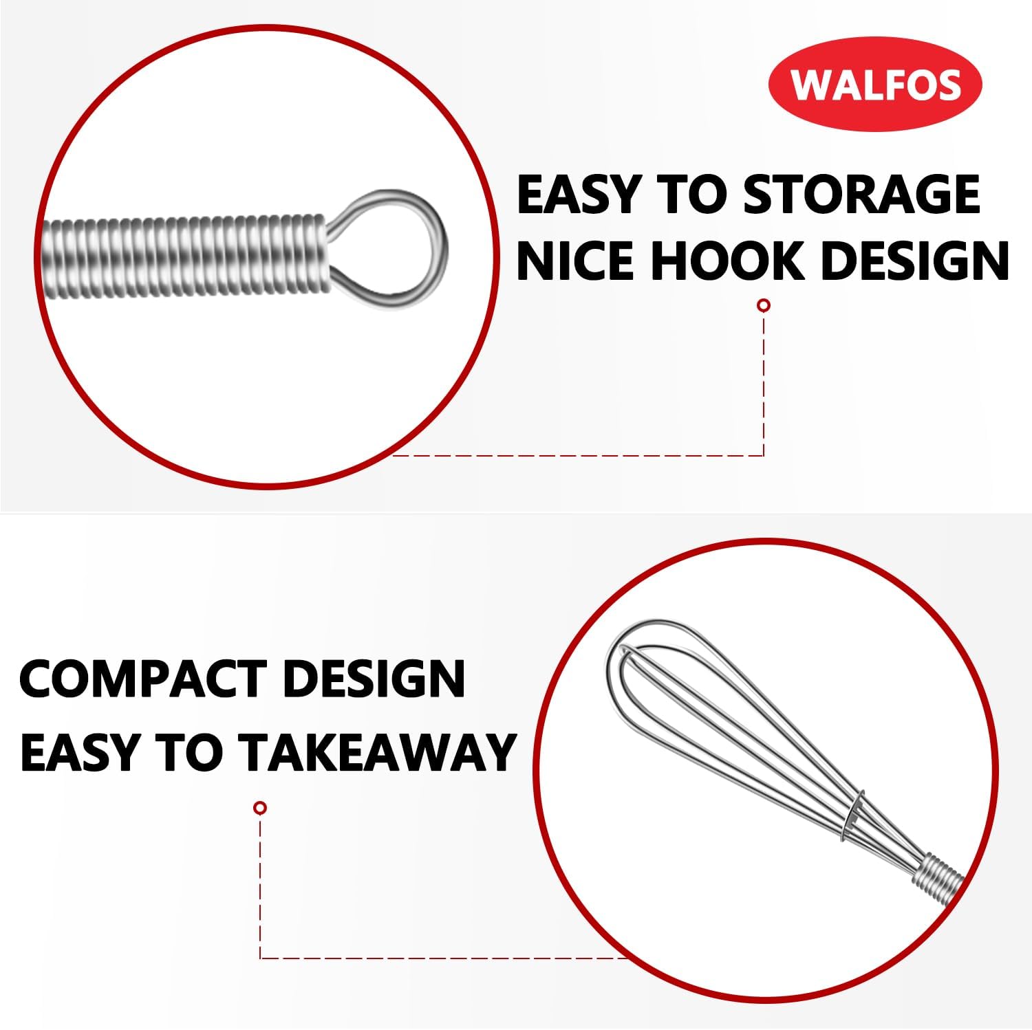 Walfos Long Small Whisks Skinny Little Whisk 10 inch Tiny Mini Whisk With Long Handle for Mixing Sauces, Coffee, Cooking,Beating, Blending Ingredients,