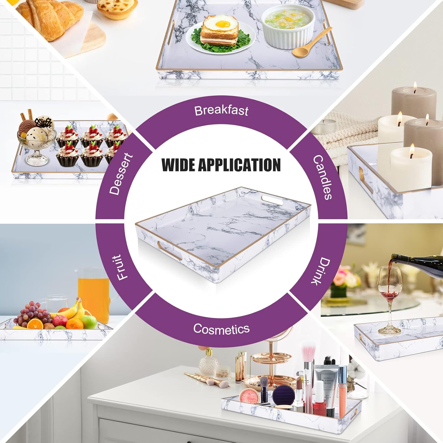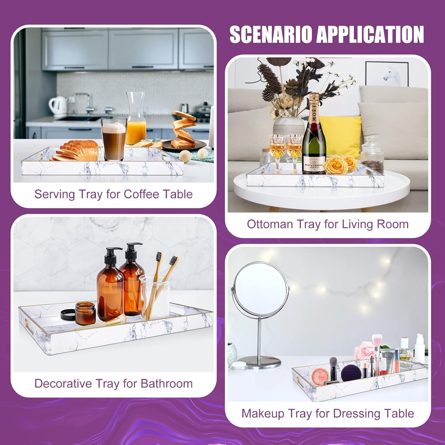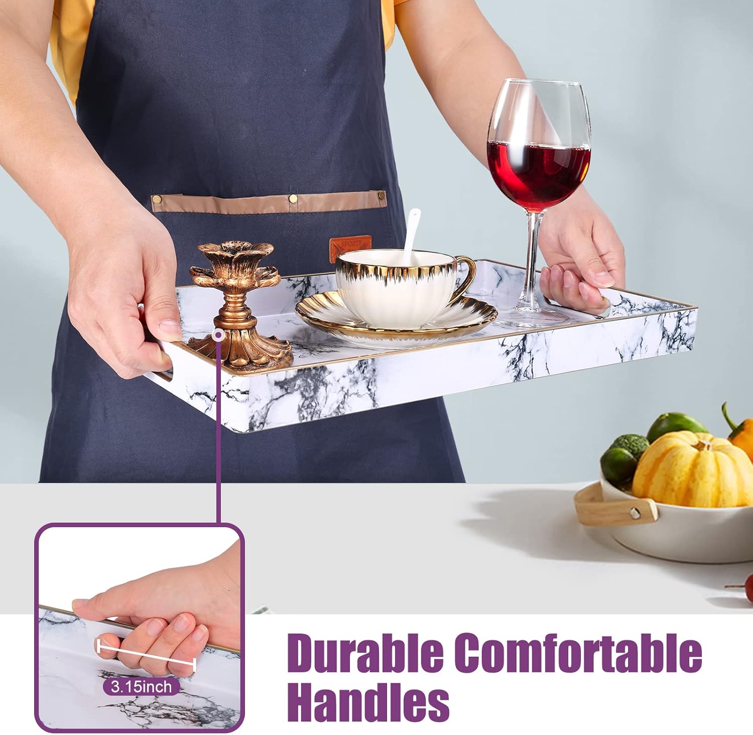 • 【Multipurpose Serving Trays】Designed for display and storage, this white marble serving tray can be used as a decorative tray, makeup tray, jewelry tray, service tray and desktop organization tray.This serving tray can also be used as a storage box for small items such as keys or TV remote controls. Also perfect for serving snacks, breakfast lunch or dinner.