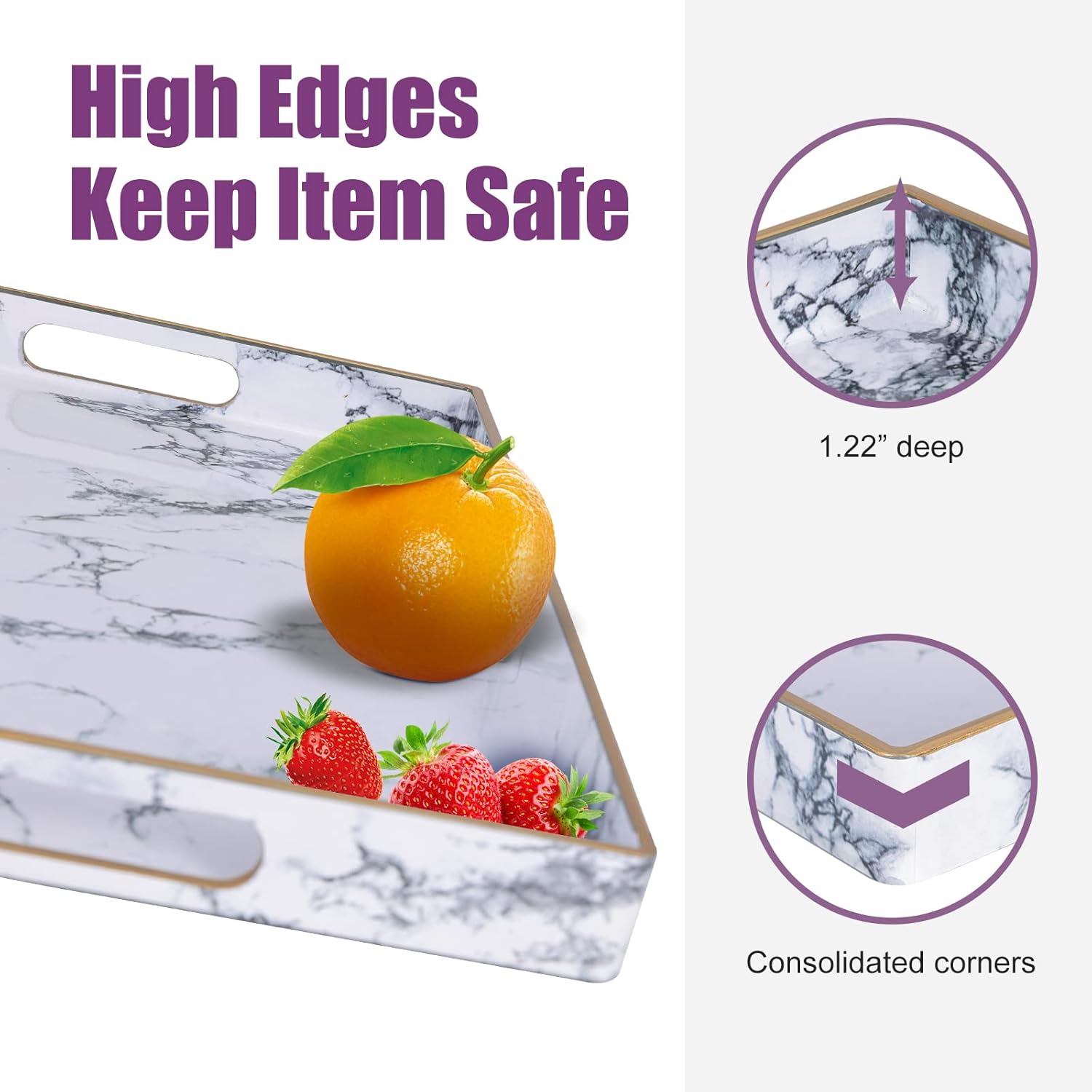 • Serving tray size】15.7x 10.2x 1.4 inches, each handle size 3.14 inches, 2 built-in handles for easy movement or carrying. The serving tray with handles feel fine and smooth, the edges are also relatively smooth, not easy to damage and easy to maintain balance.